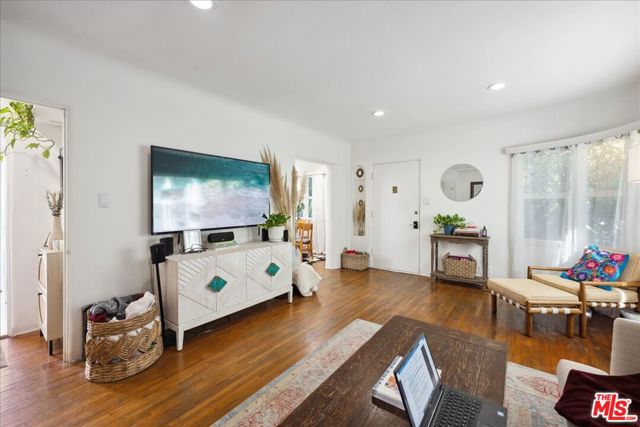 The sky is the limit with this turnkey Spanish style duplex consisting of a 2/1 and a 1/1. Each unit is privately enclosed with the feel of your own home and has interior features including original hardwood floors throughout the rooms, recess lighting, kitchen with granite countertops, custom cabinetry, and a beckoning modern bathroom with porcelain wood looking tile, glass and a luxury vanity. Front unit exterior features a charming picket fence and sufficient space to make your very own sustainable garden boxes, sun bathe or keep your pet friends enclosed. Adjacent exterior 3 car driveway. The back unit is 800+SQFT and has a private, expansive backyard with mature fruit trees (fig, avocado & lemon) for this unit only. 1 Parking Spot in the back of this property is included. There are two storage garage spaces included. There are so many possibilities to explore- leave as is, add an ADU and/or addtl units, convert into a SFR, a combination of the above or consider redevelopment opportunities including but not limited to a 5-plex layout similar to the next door properties. Some recent upgrades to electrical, gas, water/sewer and hvac. Property sold AS IS.