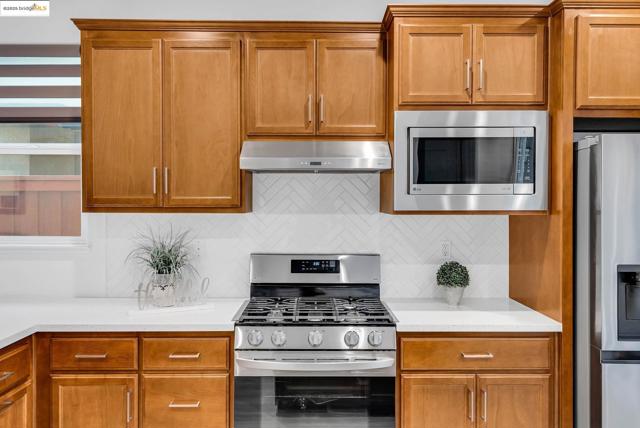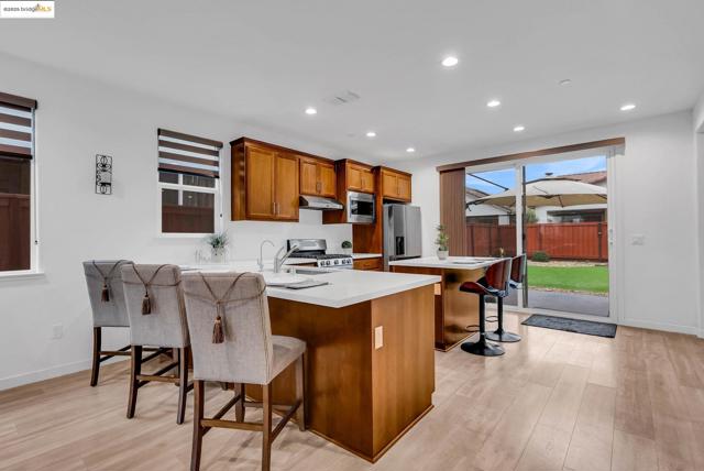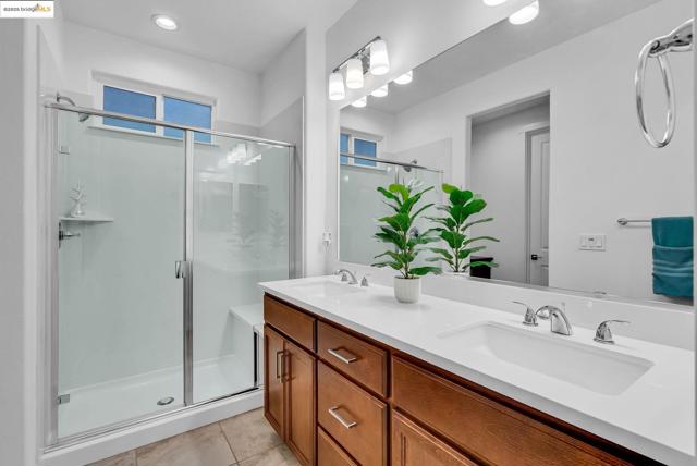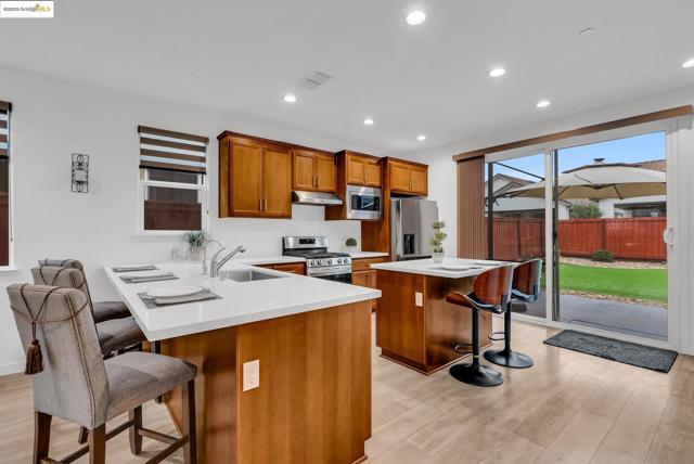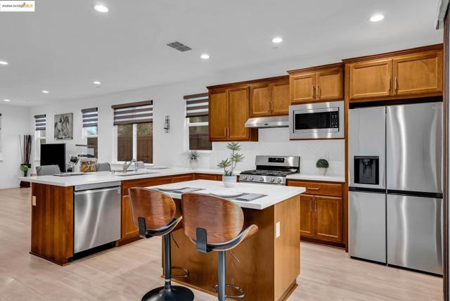 Welcome to this beautiful 2-bedroom, 2-bath home in the desirable Summit at Liberty 55+ Community, offering 1,302 sq. ft. of bright, open living space. The kitchen boasts sleek quartz countertops, a clean artic- white tile backsplash, recessed lighting, and plenty of cabinetry for storage. Stainless steel LG appliances—including a side-by-side refrigerator, microwave, dishwasher, and range—add style and convenience. Tile flooring enhances both bathrooms and the laundry room, while carpet adds comfort in the bedrooms. Additional features include recessed lighting in the living room, window shades, an LG washer and dryer, a tankless water heater, finished garage walls, tile roof, and leased solar for energy efficiency. The low-maintenance backyard offers a peaceful retreat, complete with a dedicated dog run. Summit at Liberty’s amenities include a Community Clubhouse, tennis courts, pool, spa, and fitness room. Don’t miss the chance to make this home yours!