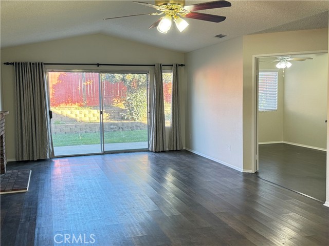 Welcome home to this quaint single story, three bedroom, 2 bath home. Upon entry you will be welcomed to an open floor plan that leads directly from the kitchen to the family room. Natural light floods the room from the oversized sliding doors leading to the backyard. Double doors open off to your right to the first bedroom- perfect for a home office, reading room or nursery. As you make your way down the hall you will find another bedroom as well as the spacious master, complete with your own en-suite bathroom, which includes a double vanity as well as a tiled tub/shower combo. This home has an updated kitchen, freshly painted interior as well as laminate wood flooring throughout. No HOA and no Mello-Roos make this a steal. Come see it before it's gone!