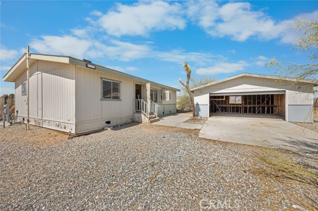 Viewing straight out at Goat Mountain, this manufactured home fixer with a very well built, large garage is located in a great part of Landers. If you've got the skills this can be a low cost of entry to home ownership. The home and garage are fenced. The 5 acre lot is not far from the paved road. It'll take some work but there are things to work with here! Worth the effort.