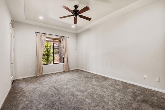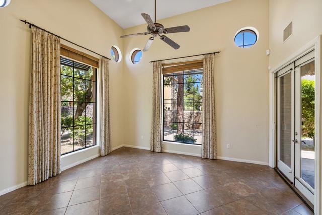 Elegant single-level end unit in the sought-after Brava gated community. With no stairs, this 3-bedroom, 2-bath condominium offers a spacious, intelligently partitioned layout ideal for full-time living or a part-time retreat. Soaring ceilings and architectural details enhance the entry, leading to a bright living room with oversized round windows and French doors opening to a large, expanded private patio.The chef's kitchen features custom cabinetry, granite countertops, stainless steel appliances, and flows seamlessly into a generous dining area--perfect for entertaining. Down a private hallway, you'll find two guest bedrooms, a full bath, and a well-appointed laundry room with direct garage access. The large primary suite includes a walk-in closet, dual vanities, soaking tub, and walk-in shower, plus private patio access.Upgrades include diagonal-set designer tile flooring, ceiling fans, solar tubes, LED lighting, retractable screens, a remote-controlled double-sided fireplace, and comfort-height heated toilets. The garage is oversized with a rare extended driveway, and a new door system with remotes.Community amenities include two pools and spas, gym, business center, landscaping, gated entry, Wi-Fi, cable, roof coverage, and more. Conveniently located near shopping, dining, and top golf courses. Schedule your private showing today!