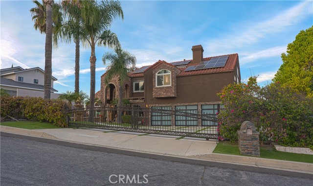 Welcome to this stunning luxury home with 5 bedrooms and 6 bathrooms in Chino Hills' sought-after hills, offering breathtaking panoramic views, modern upgrades, and an ideal location with no HOA. This home seamlessly blends serene living with convenient luxury. Enjoy expansive mountains, hills, and city lights from nearly every room. Spacious and versatile 4,285 sq ft on a generous 0.33-acre lot, featuring two main-level bedrooms/office and 3 bedrooms upstairs, perfect for families. Modern Upgrades include paid-off solar panels, a whole-house water softener, a water purification system, and updated fixtures. High ceilings, large windows, and open spaces flow seamlessly to the outdoors. Prime Location, Quiet & Desirable neighborhood with easy access to 71/57/60 freeways and shopping. This property offers luxury, sustainability, and convenience in a beautiful, prime hill location.