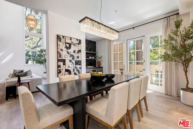 EASY PARKING FOR SHOWINGS- VALET Situated within The Brentwood, one of the neighborhood's most coveted full-service residences, this sophisticated corner townhome offers a rare blend of privacy, scale, and elevated living. Designed for those who appreciate both luxury and discretion, the residence enjoys the conveniences of a premier building with the feel of a private home. Residents of The Brentwood enjoy an exceptional suite of amenities, including 24-hour concierge, on-site management, spacious fitness center, rooftop pool and spa with sweeping city views, elegant banquet facilities, valet parking, and private storage.The main level unfolds into a dramatic, light-filled living space highlighted by soaring double-height ceilings and expansive picture windows an impressive setting for both intimate living and grand entertaining. A formal dining room with custom wet bar seamlessly connects to the chef's kitchen, which is outfitted with top-tier appliances, generous counter space, and thoughtful storage, making it as functional as it is refined. Multiple outdoor spaces, including a generously sized private patio, extend the living experience outdoors. A stylish powder room and full laundry room complete the main level. A gracefully curved grand staircase leads to the upper floor, where a serene office or library bonus space creates an ideal retreat for work or relaxation. The primary suite is a true sanctuary, with a spa-inspired en-suite bath, two substantial closets, and a private balcony overlooking lush surroundings. The second en-suite bedroom, also with balcony access, offers exceptional comfort and privacy for guests or family. Ideally located in the heart of Brentwood, moments from acclaimed dining, upscale boutiques, and cultural destinations, this exceptional residence presents a rare opportunity to enjoy refined living within one of Los Angeles' most desirable communities.