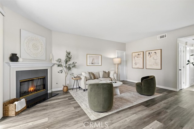 The inviting living area features a cozy fireplace and sliding glass doors that open to a private balcony, creating an ideal space for everyday living and entertaining. All bedrooms are generously sized. The primary suite includes two closet spaces and a remodeled en-suite bathroom with modern finishes.