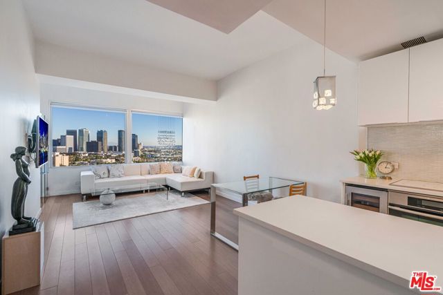 Breathtaking panoramic views. Upon entry, you are greeted by a bright and airy living room, capturing sweeping city views. kitchen offering quartz counters, stainless steel appliances. The primary bedroom offers a peaceful retreat with an en-suite bathroom and stunning city views. The second bedroom/den is perfect for guests or as a dedicated home office. city views from every room and south-facing balcony. Residents enjoy the convenience of concierge service, high-speed internet and cable included, a pool, gated parking. and private storage. Just moments from Westwood Village, UCLA, Beverly Hills, and easy access to the 405, this great value presents an incredible opportunity to create a personalized home in one of Los Angeles' most desirable neighborhoods.Full-service building with valet, concierge. HOA including electric, cable, water.
