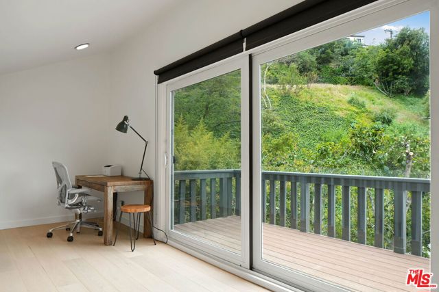 Welcome to this remarkable hillside hideaway nestled amidst lush greenery on a meandering drive with spectacular views of the Hollywood sign and surrounding lush California fauna. Enter to discover wide-plank oak floors throughout this light-filled open floor plan. Awash in natural light from an oversize skylight, the living room features built-in shelving and French doors opening to the rear grounds. Nearby, a masterfully updated kitchen is fitted with state-of-the-art stainless-steel appliances, glossy white frosted-pane cabinetry, center waterfall island, and dazzling tile backsplash. The formal dining room is spacious, with sliding glass to the outside. Upstairs, the primary retreat has two balconies, one of which is accessed via a loft-style staircase and landing which can be utilized as an office, reading space, or study. Secondary bedrooms are spacious, and bathrooms are updated with elegant fixtures and finishes. In the backyard, recreational and entertainment possibilities are endless, with multiple patios, an outdoor kitchen with barbecue and pizza oven, tiered pool, sun decks, and terraced gardens with fruit-producing trees and plantings. From your own haven tucked away from it all, enjoy wonderful vistas of one of the most famous landmarks in the world, an icon of the industry that made Los Angeles a global destination. Experience a fresh lifestyle in the coveted Oaks neighborhood between Bronson Canyon and Los Feliz, centrally located near numerous hiking trails, Griffith Observatory, parks, the 101 Freeway, studios, and more.