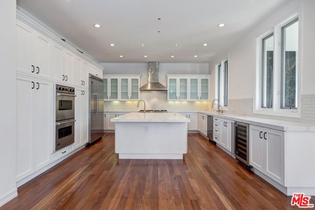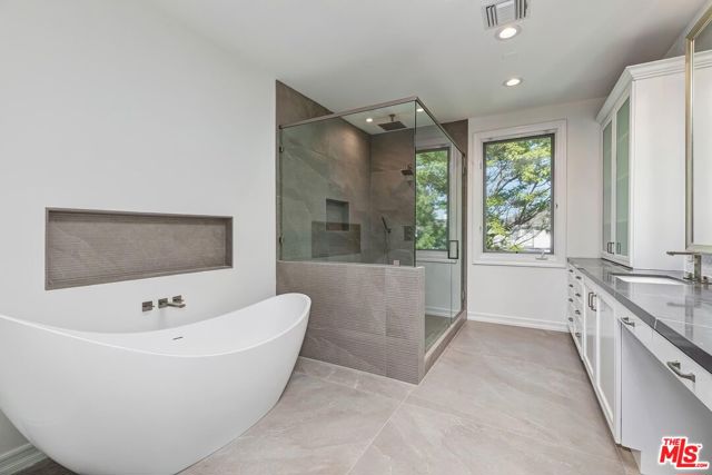 Like Brand New, Recently Remodeled! Built in 2007, a luxurious Contemporary/Modern Mediterranean home located in Cheviot Hills on the coveted Forrester Dr. Grand foyer with rolling staircase, skylight, & soaring ceilings. Spacious living room with fireplace opens to the cozy den/office which leads to a grassy, well maintained & fenced side yard. The back yard provides several options for al-fresco dining and entertaining no matter the time of year. Private and elegant formal dining room with ample built-in storage space. Sleek and modern kitchen features custom cabinetry, stone counters, new appliances & center island. Off the kitchen is the expansive family room, leading to a sprawling patio. Upstairs are 4 BDs, including an expansive master. One Bedroom has its own en-suite bath and other 2 bedrooms share a dual bath with a double vanity & oversized spa tub. The master features an amazing walk-in closet with a center storage unit, & an impressive spa like master bath perfect for relaxation. Downstairs is subterranean 2 car garage aside Maid's Room. Available March 15th.