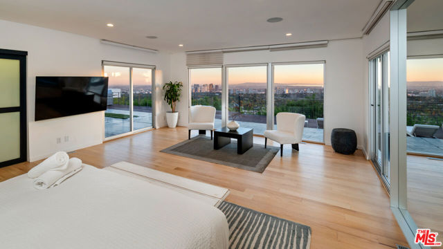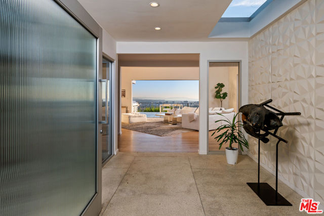 BREATHTAKING PANORAMIC CITY AND OCEAN VIEWS define this spectacular modern residence, privately perched at the top of BHPO. Behind a gated drive-on motor court, this single-level architectural gem has been designed for today's lifestyle - open, sophisticated, and flooded with natural light. The dramatic Great Room is the heart of the home, with soaring ceilings and expansive pocket glass doors that disappear to reveal a seamless indoor/outdoor flow and uninterrupted skyline views stretching from downtown to the Pacific. Every space in the home was designed to maximize the incredible vistas and sense of privacy. A true entertainer's dream, the Great Room opens to a vast deck overlooking the city below ideal for dining, lounging, or hosting gatherings under the stars. The sparkling pool and spa sit perfectly positioned to capture both the sun and the view, creating a resort-like experience right at home. The custom kitchen is professionally equipped with stainless steel appliances, sleek cabinetry, and designer finishes. Whether cooking for two or catering for twenty, the flow and layout are effortless. The open-concept design continues throughout, with natural hardwood floors, designer lighting, and a curated selection of custom furniture and furnishings included in the lease. The luxurious primary suite is a private sanctuary with walls of glass that open directly to the pool and terrace. The spa-quality bathroom features a steam shower for two, double vanity, and elegant finishes, along with a spacious walk-in closet. Each additional bedroom is generously sized and beautifully appointed, with flat-screen TVs and thoughtful details throughout. The home's crisp, modern aesthetic is complemented by warm, natural materials and an abundance of sunlight at every turn. Perfectly situated at the end of a private road, this property offers the best of both worlds - peaceful seclusion and effortless access to Beverly Hills, the Sunset Strip, and the Valley. A rare and extraordinary lease opportunity. Enjoy unparalleled views, resort-style living, and the ultimate expression of modern luxury. Must see!