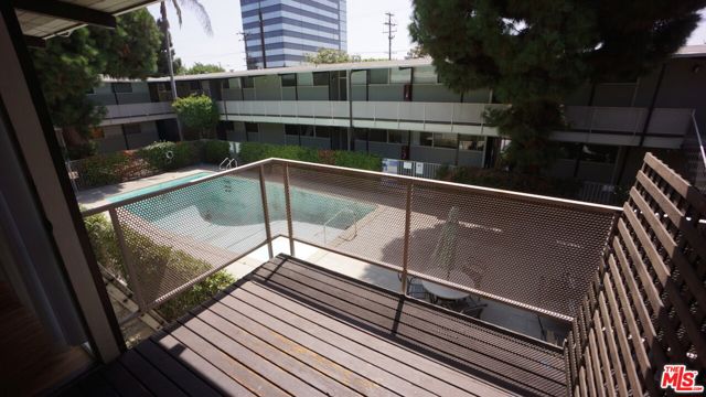 1 bedroom 1 bath. Very Open Floor Plan, Extra Large Windows, Upper Floor with Vaulted Ceilings. Extra Large Balcony with Pool Views. Lots of Light. 1950's Modern Architecture, nice