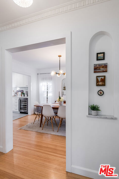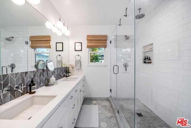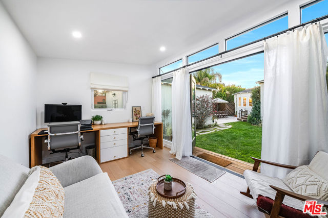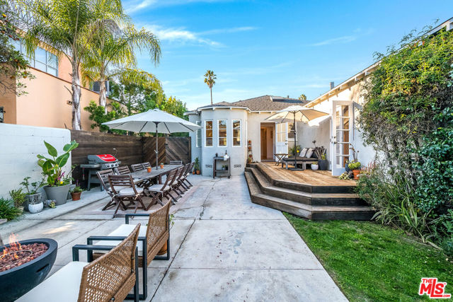 Welcome to this enchanting Crestview home, where classic charm meets modern convenience. Nestled on a peaceful, tree-lined street in Beverlywood's desirable Crestview area, this 2-bedroom, 2-bath residence has been fully remodeled to blend timeless elegance with contemporary amenities.As you step inside, you're greeted by large, sunlit rooms adorned with real plaster crown molding, coved ceilings, and elegant arched doorways, creating a harmonious blend of classic design and modern comfort. The inviting living room features a cozy wood burning fireplace with its original mantle, adding warmth and character to the space.The beautifully updated Kitchen features Quartz countertops and marble backsplash, Stainless Steel appliances and a lovely Breakfast nook for your casual mornings or afternoon teas with a relaxing view of the generous backyard.The spacious primary suite is a true sanctuary, complete with a luxurious en-suite bath and a generous walk-in closet. The second bedroom is equally spacious and versatile, perfect for family or guests.Beyond the main living areas, the property also features a delightful backyard retreat. Enjoy a large Al Fresco dining area, a cozy fire pit, and an elevated deck area extending your living space outdoors, creating a relaxed vibe to enjoy California's beautiful weather.Additionally, the home includes a dedicated laundry area, a finished two-car garage with floor to ceiling built-in Storage and work bench cabinets in addition to a permitted detached bonus room of approximately 160 square feet, ideal for a home office, gym, or guest suite.Situated in the vibrant Crestview neighborhood, this home offers convenient access to houses of worship, Culver City, Beverly Hills, and major freeways leading to DTLA and LAX. This is a rare opportunity to own a home that beautifully marries classic charm with contemporary living.