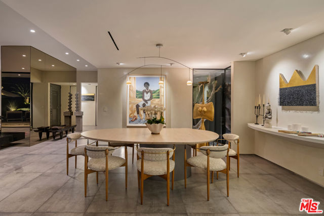 Recently rebuilt with intention and the highest level of craftsmanship, this reimagined mid-century retreat captures the rare balance between organic calm and architectural precision. The front grounds - composed by noted landscape architect Garett Carlson - frame the residence with lush, sculptural greenery and zen-inspired paths.Inside the secure gated entry, light moves fluidly across Venetian plaster walls, creating a tranquil rhythm throughout the residence. The formal living room serves as the centerpiece - anchored by a floor-to-ceiling bronze mirror fireplace and piano - where expansive glass panels open completely to the outdoors, merging home and landscape into one continuous environment. The kitchen is equal parts performance and display: new Miele appliances including built-in coffee, microwave, and concealed refrigerator/freezer, Wolf range and beautifully maintained stone counters. An adjacent glassware showcase and bar serve a second living area, also opening to the outside for seamless entertaining. The adjacent wine lounge adds a full modern bathroom and temperature-controlled refrigerator to the space, while a richly appointed powder room with a carved stone basin and dedicated laundry room complete the wing.Floor-to-ceiling sliders run the length of the main rooms, opening to an outdoor oasis designed for effortless gatherings: a large pool and spa set against lush California greenery, an alfresco kitchen and BBQ with generous dining deck, a separate seating area wrapped around a fire pit, and pockets of quiet landscape throughout. The primary suite extends directly to the hammock terrace and pool, and features a dramatic two-level, custom dressing room/closet, along with a spa-caliber bath appointed with rare Italian onyx dual vanities and a glass rainfall shower. A second bedroom enjoys its own bath with soaking tub and rainfall shower and opens to a private patio and fitness area. A third room - currently configured as the expansive primary closet offers flexibility for a future guest suite if desired.Every system was carefully renewed between 2020 and 2023, including new roofing, solar energy, and a high-efficiency HVAC with linear diffusers. Additional amenities include a sculptural metal slatted two-car garage with ample storage, and total privacy achieved by the enveloping landscape and design. The result is a refined indoor-outdoor retreat where art, light, and craftsmanship are the constant.