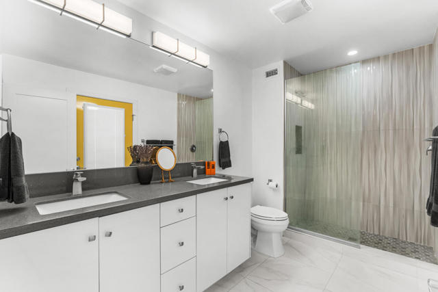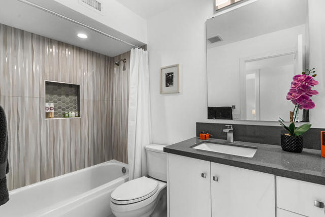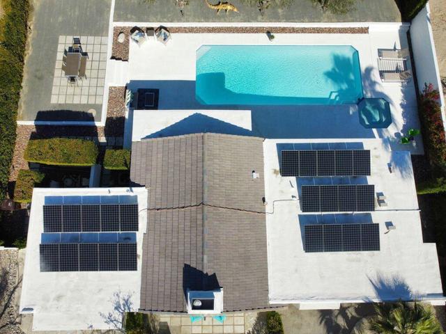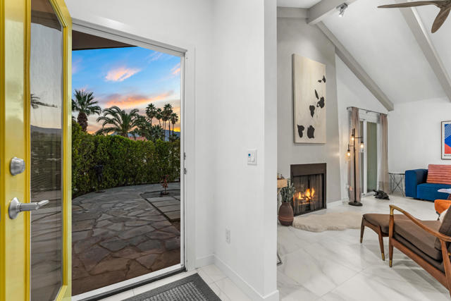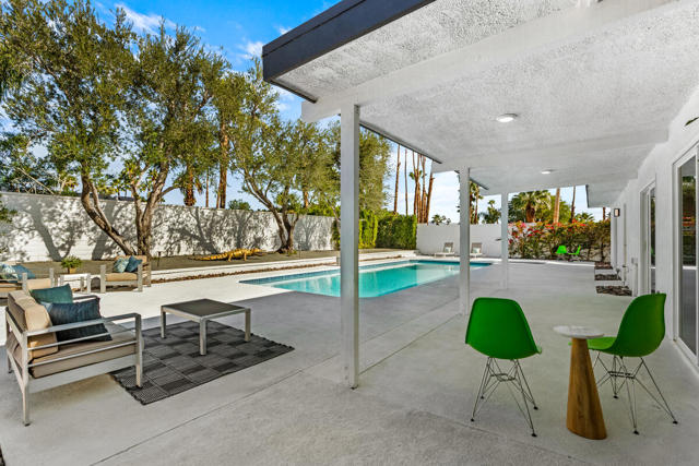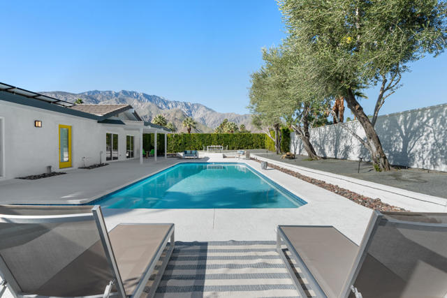 Welcome to 1022 E. El Escudero, a stunning retreat nestled in the heart of Palm Springs. This meticulously remodeled home boasts modern elegance and timeless sophistication, offering a luxurious oasis for discerning buyers. The current owners have invested nearly $100,000 in upgrades after a complete refurbishment by the former owners. As you step inside, you're greeted by an expansive open-concept living space, featuring soaring ceilings, oversized ceramic tile floors, and abundant natural light streaming through large windows. The living room is perfect for entertaining, with a cozy fireplace and seamless flow to the outdoor patio, where panoramic views of the surrounding desert landscape await. The gourmet kitchen is a chef's dream, showcasing premium stainless steel appliances and plenty of room to prepare meals. Adjacent to the kitchen is an elegant dining area, ideal for hosting intimate gatherings or festive dinner parties. The primary suite is a sanctuary of relaxation, offering a spacious layout, and a spa-like ensuite bathroom with dual vanities and a separate glass-enclosed shower. Step outside to discover a private backyard oasis, complete with a sparkling pool, spa, and multiple seating areas for lounging and al fresco dining. The lush landscaping and majestic mountain views create a serene ambiance, perfect for enjoying the quintessential Palm Springs lifestyle. The home has a 23-panel solar lease which will be transferred to the new owners. Located in a coveted neighborhood, this home offers proximity to shopping, dining, golf courses, hiking trails, and all the attractions that make Palm Springs a world-class destination. Located on lease land ($5820 per year that expires in 2067). The home may be used as a short-term vacation rental investment. Furnishings are available separately. Don't miss this opportunity to own a slice of paradise in one of California's most desirable locations.