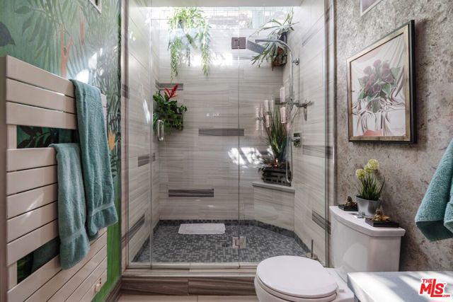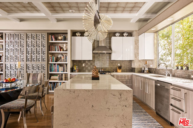 Tucked away on a private gated, brick-paved street, this radiant modern smart home offers both security and serenity in the heart of Hollywood's Media District.From your own oversized, EV-ready two-car garage with storage you step inside to discover the generous two-story gallery-like entry foyer. A stylish bedroom with a full bath and access to a beautifully landscaped lanai perfect as a serene guest suite or sophisticated home office.A graceful, wide staircase leads to the dramatic main floor, where soaring coffered ceilings crown a voluminous great room, seamlessly integrating the open-concept living, dining, with refined built-ins, and chef-inspired kitchen. The kitchen features custom cabinetry, sleek quartz countertops, a large waterfall island, and premium appliances that blend high design with everyday function ideal for both entertaining and intimate evenings at home.Upstairs, you'll find a luxurious primary suite with coffered ceiling and an additional guest suite, currently being used as an office, both offering spa-like bathrooms, generous closet space, and designer finishes that elevate comfort into something extraordinary.Crowning the home is a rooftop terrace your private outdoor sanctuary equipped with a free standing open-sided gable roof large gazebo lounge, bright and breezy under the sun, soothing and exotically inviting under the stars, dining, sink service area, and BBQ areas, all framed by sweeping views of the city skyline, the Hollywood Hills, and its iconic sign. Whether basking in the sun or under the stars, this rooftop retreat is unmatched. Perfectly situated on serene West Hepburn Way, this residence places you just steps from acclaimed restaurants including the Tesla Diner drive-in theater with 75 - V4 Supercharger stalls, premier art galleries, several live theaters and the vibrant pulse of Hollywood all while offering the peace of a tucked-away retreat. Sunlit and airy throughout the day, the home transforms at night into a haven of tranquil, exotic comfort. Rare, radiant, and move-in ready this is a must-see opportunity that won't last.