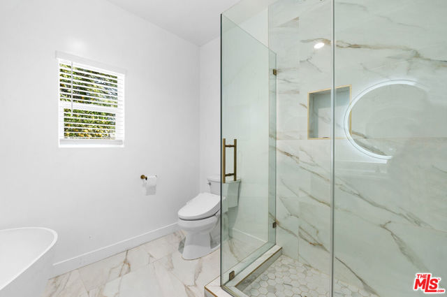 Beautifully redesigned Spanish-style home with 3 spacious bedrooms and 3 full baths, located on a quiet, tree-lined street in the Westwood/Century City neighborhood. A welcoming front courtyard patio opens to the entryway, showcasing French oak floors throughout, LED recessed lighting, dual-pane windows, an in-unit washer & dryer, and pre-wiring for high speed internet. The home's open-concept layout is anchored by a sleek, linear fireplace and filled with natural light from a large picture window, and flows seamlessly into a modern kitchen with an oversized island, quartz countertops, stainless steel appliances, and generous storage & counter space. The primary suite features a spa-like bathroom with dual vanities, a TOTO bidet, and high-end marble details. Two additional en-suite bedrooms are perfect for family, guests, or a home office. Step outside to a private backyard with Century City skyline views, and a detached two-car garage with additional driveway space for more vehicles. Prime location just minutes from Westfield Century City, UCLA, Beverly Hills, and major studios like Fox Studios, with the highly sought-after Westwood Charter School as the designated elementary school. Available for immediate lease. Serious inquiries only.