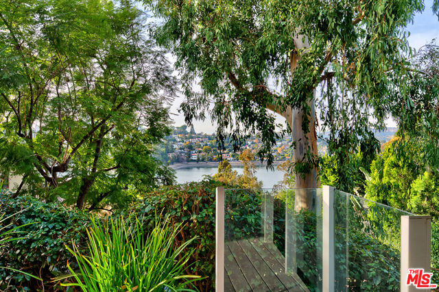 Architectural home with full lake views from almost every room. Private, gated flat lot. All-new 2008 construction. Open indoor/outdoor floor plan. Oak & finished concrete floors. Glass rock fireplace. Viking kitchen. Fleetwood aluminum sliders. European lighting and fixtures. Flat screen wall-mount TVs. Many decks. Interior glass doors. All-granite baths. Steam shower in master & walk-in closet. Third bedroom has separate entrance and can be used as an office or guest quarters. Garage for two cars with additional driveway parking for four. Custom sound. Partly furnished with high-end indoor/outdoor furniture. Landscaping features modern fountains and rare, mature palms and ferns. Flash water heaters. Gardener included. Garage has separate forced air and heating, glass-paneled doors, and can be used for studio or art space, etc.