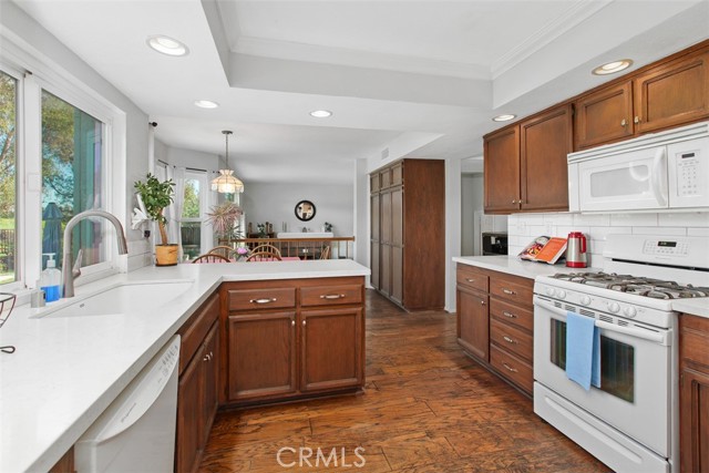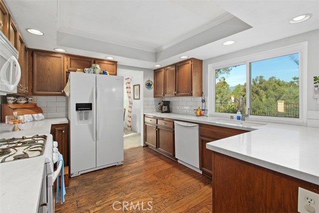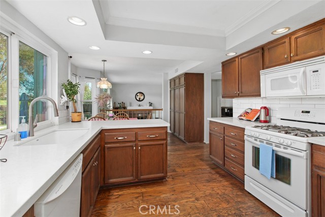 Nestled on a quiet street near Rimhurst Park in beautiful Lake Forest, this exceptional and classic 4-bedroom, 3-bathroom home offers the perfect blend of comfort, convenience, and scenic beauty. Step inside to discover a light-filled open floor plan designed for both everyday living and effortless entertaining. The spacious layout seamlessly connects the living, dining, and kitchen areas, creating a warm and inviting atmosphere. A highly desirable main-level bedroom and full bathroom provide flexibility for guests, multi-generational living, or a private home office. The adjacent family room with a well-placed fireplace lends itself to a cozy and relaxing atmosphere to unwind and rest. Upstairs, generously sized bedrooms offer comfort and privacy, while the primary suite serves as a peaceful retreat. Large double-paned Vinyl Milgard windows throughout the home frame stunning mountain and rolling hill views, bringing natural beauty indoors, while offering energy efficiency, comfort, and style. Outside, enjoy a private wrap-around yard with breathtaking views of hills and Saddleback Mountain — a true nature lover’s paradise. Whether hosting gatherings, gardening, or simply relaxing under the California sky, this expansive outdoor space offers endless possibilities. The large driveway and three-car garage provide ample parking and storage.