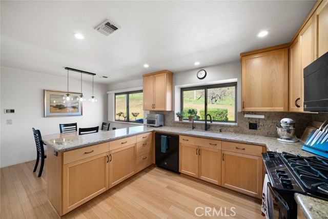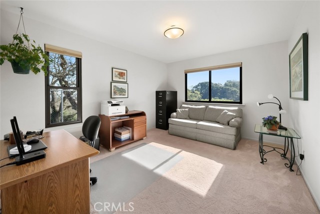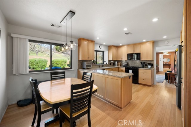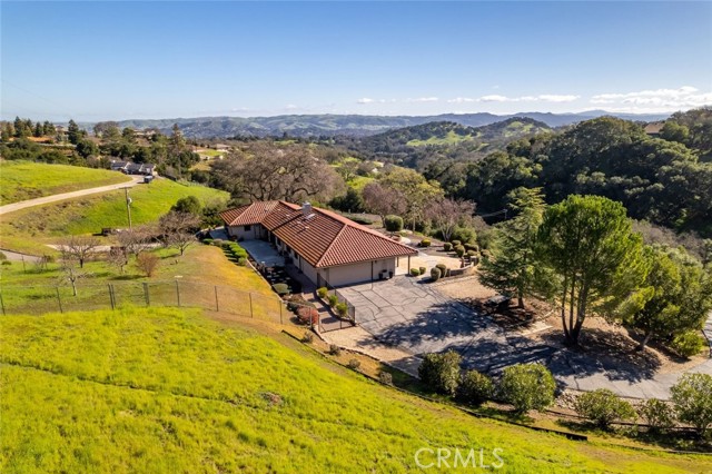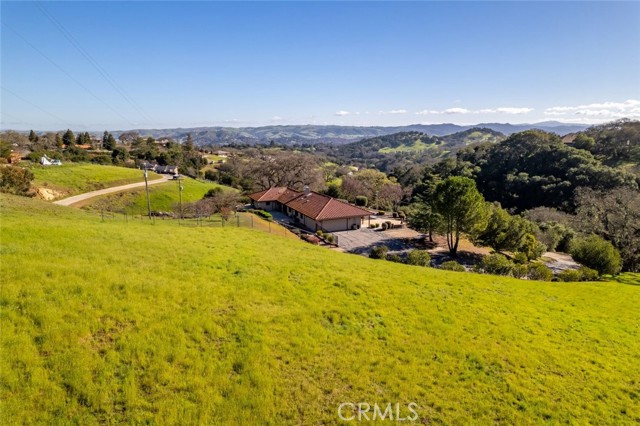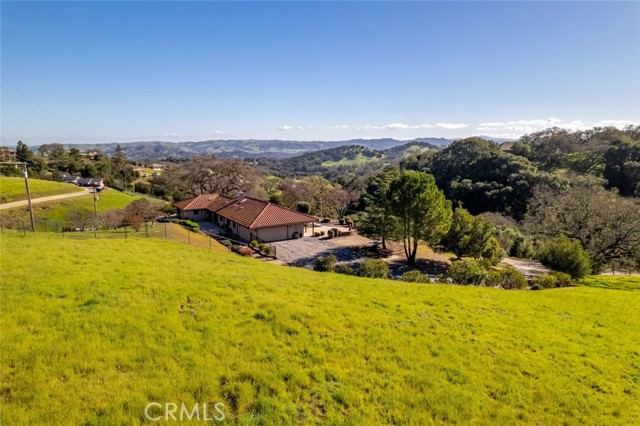 Enjoy single level living in this well cared for 3 bedroom and 2 bath home. Located on the west side of Atascadero, this home is approximately 2,030 square feet and sits on nearly 2.5 acres of gently rolling land. The property is set back from the road, providing a private setting.The open floor plan features hardwood flooring throughout the living, kitchen, dining, family room and hallway. The living room includes high ceilings, a gas fireplace with brick hearth, built-in shelving and picture windows that take in the beautiful and unblockable views.The updated kitchen offers newer appliances and a breakfast area with windows that fill the space with natural light. A slider door adjacent to the kitchen leads to a rear patio, allowing for easy indoor-outdoor living. The hall bathroom has been updated with decorative tile and a walk-in shower with glass enclosure. The spacious primary suite includes a slider door to the rear patio plus two walk-in closets and a full bath with soaking tub and separate shower. Two additional bedrooms enjoy expansive views. A bonus room inside the garage provides flexible space for a home office or fitness area. There are two air conditioning units for year-round comfort. The oversized two-car garage includes a laundry area, workshop and extra workspace. The property is partially fenced and includes an orchard with fruit and nut trees, roses and more. This exceptional property should not be missed. Information not verified.