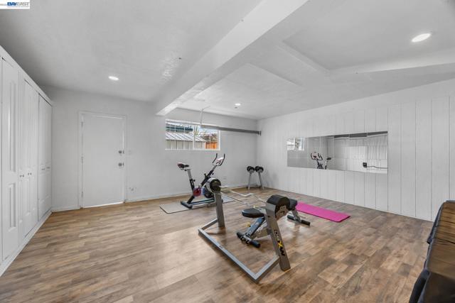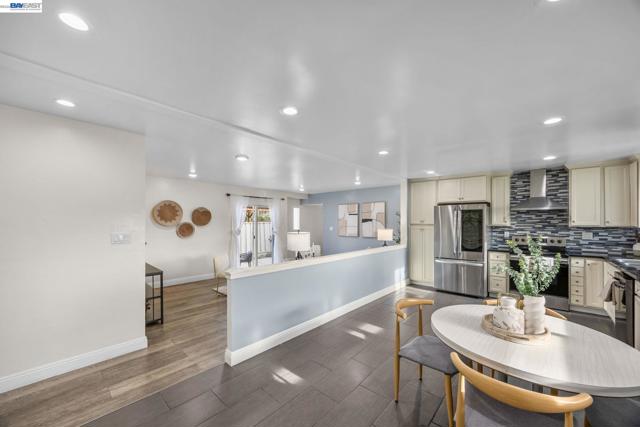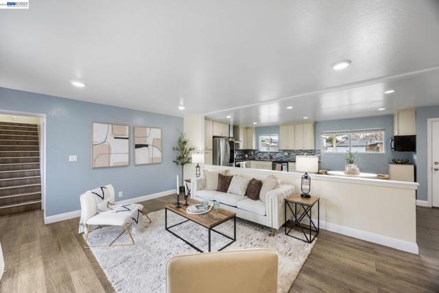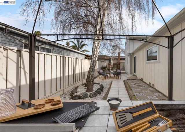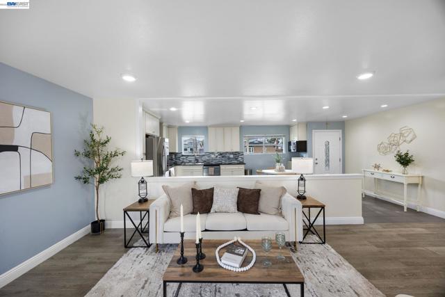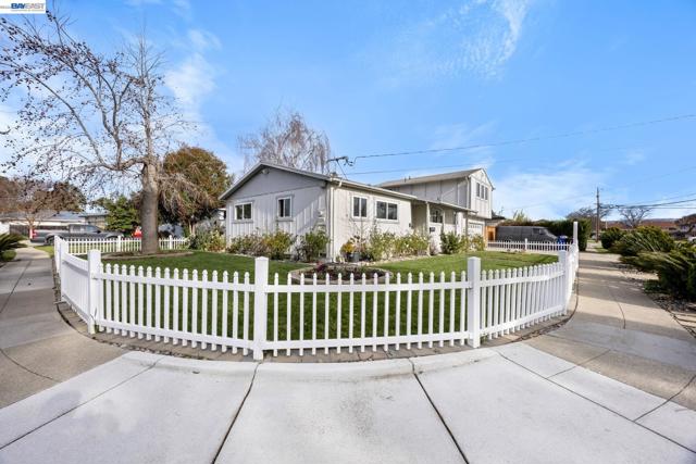 An exceptional corner-lot residence with rare flexibility, ideally situated in the coveted Normandy neighborhood. A white picket fence, manicured grounds, and a generous three-car driveway create inviting curb appeal, while inside, natural light enhances the thoughtfully designed open layout. The expansive kitchen showcases shaker cabinetry, stainless steel appliances, generous prep space, and a casual dining area that flows effortlessly into the living room overlooking the serene backyard. The well-appointed floor plan offers four spacious bedrooms and three bathrooms, including two private primary ensuites. Three bedrooms are conveniently located on the main level, providing ideal flexibility for multigenerational living or guests. A converted garage adds valuable bonus space perfect for a media room, office, gym, or playroom, with the option to restore traditional garage use. The backyard is designed for effortless entertaining, featuring a built-in BBQ, low-maintenance landscaping, complete with a storage shed. Conveniently located near top schools, parks, and a wealth of everyday amenities, with easy access to major commuter routes including Highways 84 and 880, this exceptional home offers refined comfort and seamless connectivity to Silicon Valley and San Francisco.