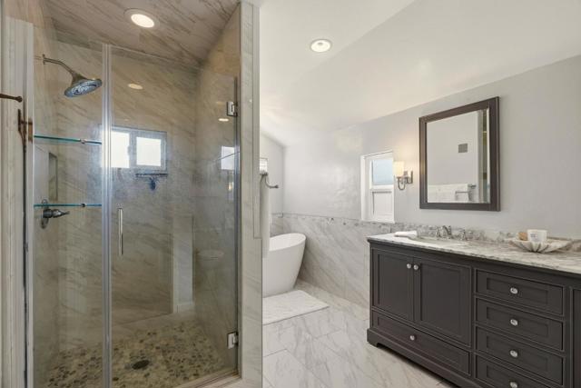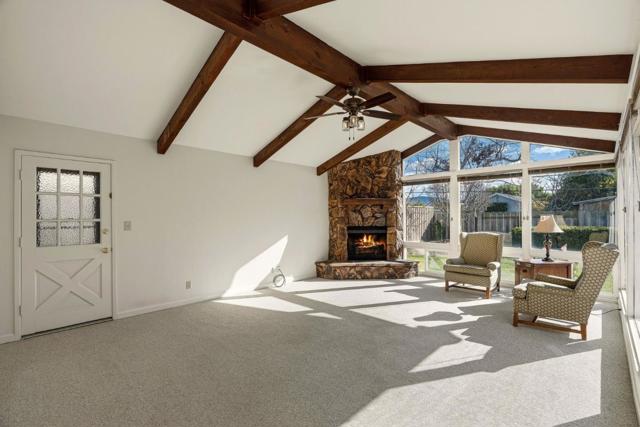 This 4-bedroom, 3-full-bathroom home features a bright and functional floor plan with spacious gathering areas and cozy fireplaces in both the formal living room and family room. The large family room showcases high ceilings and exposed beams, creating an open and inviting space perfect for everyday living and entertaining. Two bedrooms offer en-suite bathrooms, providing flexible options for guests, a home office, or multi-generational living. The primary suite features high ceilings, a sliding glass door overlooking the backyard deck, and a sitting area, the perfect spot to enjoy a morning coffee or unwind with a good book. The primary bathroom has been tastefully remodeled and includes a double vanity, soaking tub, and stand-up shower. Step outside to an expansive backyard deck, ideal for weekend BBQs, playtime, and creating lasting memories. Additional features include a Culligan water softener system. Conveniently located near major South Salinas shopping centers, dining, and everyday essentials. Less than 10 minutes from Fort Ord National Monument Trails, offering easy access to hiking, biking, and outdoor adventures. Enjoy convenient access to Highway 68 for an easy commute and to experience everything the Monterey Peninsula has to offer.