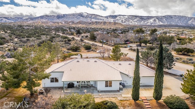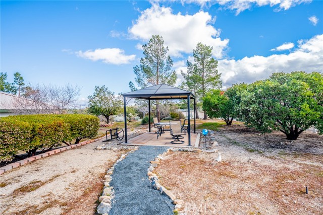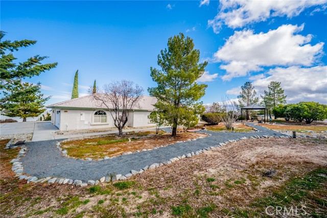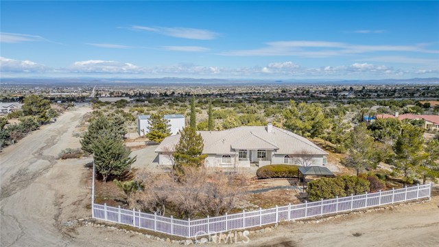 This spacious single-family home located on the South side of Pinon Hills offers 3 bedrooms, 3 baths, and 2,248 sq ft of thoughtfully designed living space on over 2 acres of wide-open land. Perfect for buyers seeking room to grow, this property combines everyday comfort with endless outdoor possibilities. Inside, you'll find a wonderful open floor plan where kitchen is open to the family room with natural gas fireplace. Enjoy the large kitchen with granite counter tops, breakfast bar, dining nook, Island and huge walk-in pantry, counter top range, separate oven and built in microwave. The primary bedroom has two walk-in closets and bath has separate soaking tub and shower with two sinks. A dedicated laundry room keeps daily routines simple. The attached 3-car garage provides generous parking, storage and has a sink. Both evaporative cooling and central A/C ensure year-round comfort. NATURAL GAS adds efficiency and convenience to your everyday living. Step outside to discover your own private retreat. A large 24x40 outbuilding offers workshop space, storage, or room for hobbies, while the front-yard gazebo and white vinyl fencing invites relaxation and curb appeal. Mature landscaping frames the property beautifully, and there's even a horseshoe pit for weekend fun. With 2.08 acres at your fingertips, you'll have space for animals, gardening, or simply enjoying the freedom of wide-open desert living.