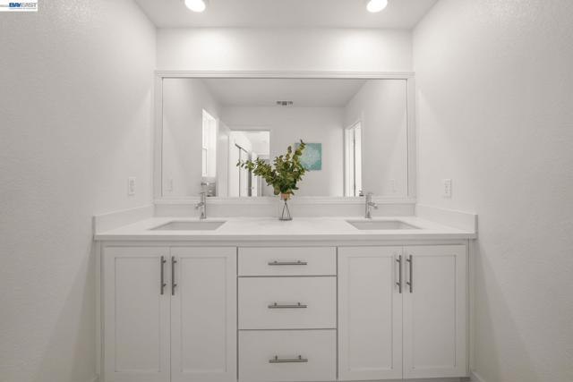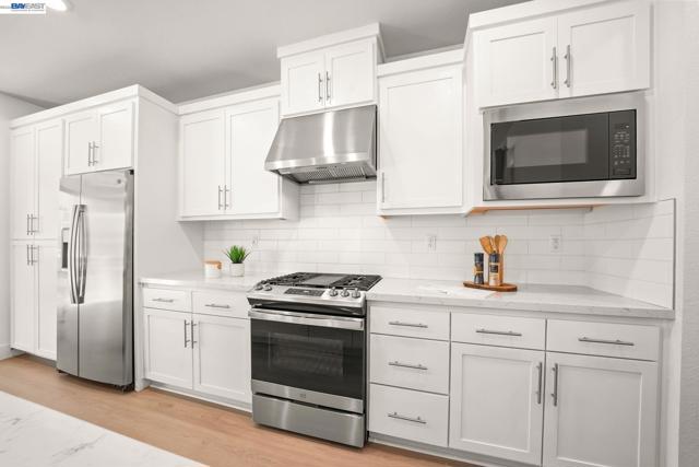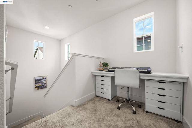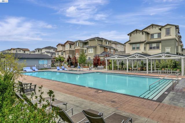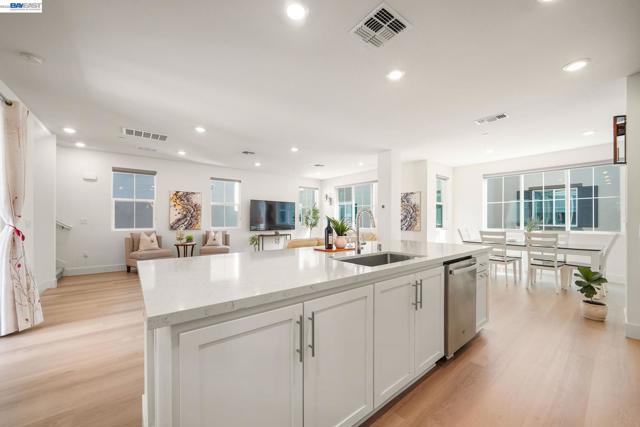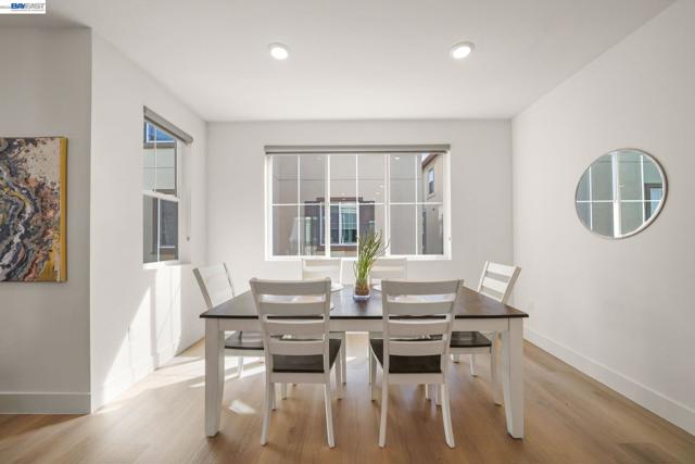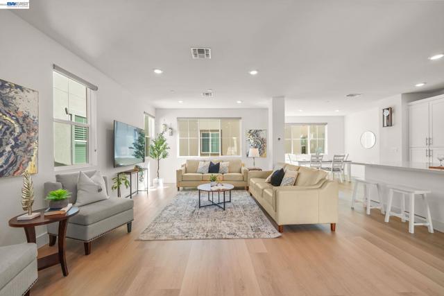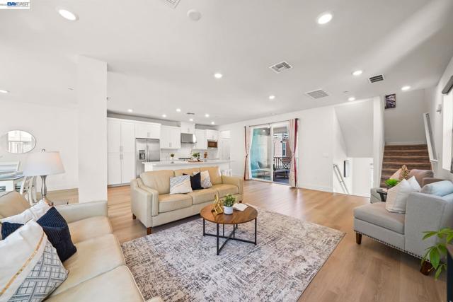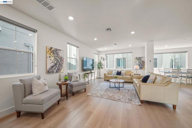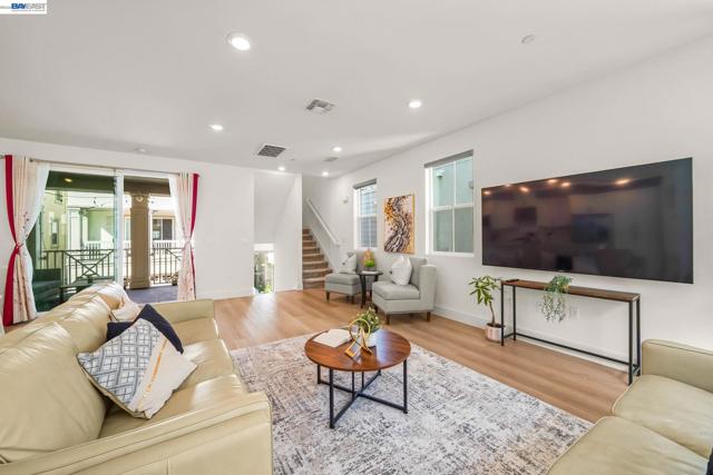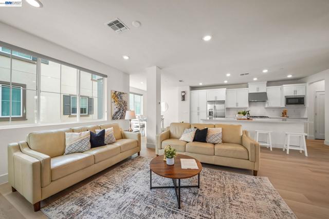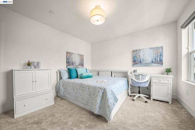 Welcome to this stunning 4-bedroom, 3.5-bathroom home in the desirable Bridgeway community of Newark, offering 2,370 sq ft of beautifully designed living space with modern finishes, a private California Room, and a cozy backyard. Residents enjoy access to resort-style amenities including a pool, clubhouse, parks, playgrounds, walking trails, and a dog park. Upon entry, you’re greeted by a charming seating nook and a private guest bedroom with an ensuite bath, plus backyard access and entry to the two-car garage. The light-filled second level features high ceilings, abundant windows, recessed lighting, and new luxury vinyl flooring, along with a spacious living room, dining area, half bath, and a beautifully appointed kitchen with stone countertops, full backsplash, stainless steel appliances, gas range with professional hood, large island with seating for four, pantry, and adjacent dining area. The California Room creates seamless indoor-outdoor living. The third level offers a primary suite with custom closet built-ins and dual-sink vanity, two secondary bedrooms, hall bath, built-in desk area, and laundry room. Ideally located near Hwy 880, Hwy 84/Dumbarton Bridge, BART, major employers, and shopping.