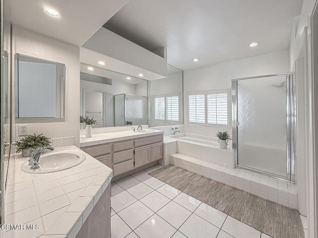 OAK PARK BEAUTY! Feel the magic and blissful tranquility in this Oak Park home with POOL & SPA! Warm & inviting Living Room with fireplace. Dining room opens to the living room with French doors to the side yard. Plantation shutters and oakwood flooring throughout. Kitchen with tile flooring, sink has garden window that overlooks the backyard and plenty of cabinets for storage. Upgraded with NEWER stainless-steel appliances. Kitchen flows into the Family Room with French Doors to Spa. Upstairs: Primary Bedroom with high ceilings and an en-suite Bathroom, complete with two vanities, soaking tub and separate stall shower. Huge walk-in closet with custom built-ins. Two more bedrooms upstairs plus LOFT optional media room, study or potential 4th bedroom. Shared hall bath with dual-sinks. NEW Air Conditioning Entertainers backyard with pool, spa and BBQ. This beautiful home is nearby schools, parks, shops, restaurants, and an incredible wellness center. Truly a SPECIAL home.