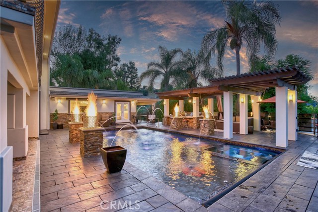 Stunning home, south of the blvd in highly coveted Tarzana is now listed for sale, and available for viewing. Sitting on nearly half an acre, this home has nearly every accommodation you could ask for, including EV charger! The main house has 4 bedrooms and 5.5 bathrooms, 4,521 sqft of luxury living. The chef's kitchen includes an oversized island with stainless steel appliances, warming drawer, walk-in pantry, custom cabinetry and so much more! The primary suite includes a Japanese soaking tub and separate steam shower with heated floors for that authentic spa experience, including His and Her walk-in closets. A lower level gated area is perfect for RV parking, garage or sports court. This property includes a detached 2 bed, 1 bath 1,142 sqft guest house that can be used for guests or a state-of-the-art recording studio, office or as a rental property. The backyard is designed in a grand resort style. Palatial salt water pool, heating, misting, koi pond, sound system and TV's throughout... built as a home with entertaining in mind! Every accommodation you could ask for.