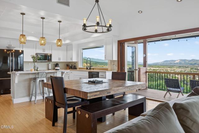 Welcome to this elevated hillside retreat perched above the valley with sweeping panoramic views. Situated on an expansive 23,000 sq ft. lot, this thoughtfully upgraded home offers space, privacy, and refined living just minutes to Ventura's beaches, dining, and downtown. With over 3,000 sq ft of living space, the home features 4 bedrooms, a private office and 3 full bathrooms all tastefully updated with a clean, contemporary feel. The open light filled floor plan flows effortlessly from the spacious living areas to the outdoors where oversized windows frame gorgeous valley and mountain views.A stunning wall of bifold glass doors serve as one of the home's most impressive features, opening the entire living area directly onto the newly built kitchen deck. This architectural element is perfect for entertaining, dining or everyday enjoyment. Step outside and enjoy the rare combination of usable land and views. Meandering Santa Barbara stone pathways are complemented with native and naturalized landscaping creating a botanical garden-like setting with plenty of room to entertain, garden, or simply relax and take in the sunsets and city light views.Tucked away in one of Santa Paula's most desirable neighborhoods, this property offers peaceful surroundings while remaining just minutes from Ventura, Ojai, and the coast -- delivering the space and value that's increasingly hard to find closer to the beach.A rare opportunity to own a turnkey view home with room to breathe.