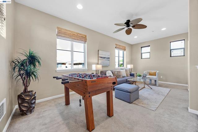 Gorgeous premium end-unit townhome with abundant natural light and views, located in the highly desirable Windemere community of San Ramon. This beautifully designed residence offers 3 bedrooms and 3.5 bathrooms, plus an expansive bonus room with a full bath, ideal as a fourth bedroom, guest suite, media lounge, or game room. A spacious second-floor loft adds even more versatility, perfect for a home office, study area, or additional flex space. Stylish flooring and custom closet organizers enhance both functionality and design throughout. The inviting living room features a cozy fireplace and opens to a private patio, perfect for relaxing or entertaining. The spacious primary suite includes a private retreat area, its own covered balcony, and a large walk-in closet complete with a custom built-in organization system for exceptional storage. The luxurious primary bath offers dual sinks, a soaking tub, and generous space. Conveniently located within walking distance to Top Rated Dougherty Valley High School and Hidden Hill Elementary School, neighborhood parks, scenic Alamo Creek Trail and just minutes from shopping, dining, and commuter routes. An exceptional opportunity combining comfort, flexibility, and prime location in one of San Ramon’s most sought-after neighborhoods.