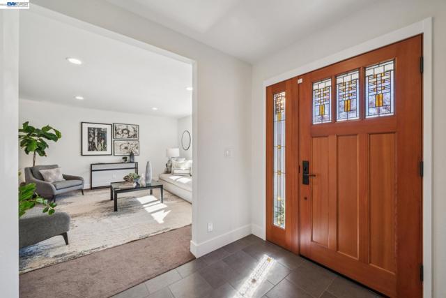 Wonderful Lake Chabot, rolling hills, and expansive greenery are the backdrop for an extraordinary life in this tastefully renovated 3BD/2BA Castro Valley Mid-Century, extensively rebuilt in 2012. Designed to embrace the park’s natural beauty, this 1804 SQFT residence offers sweeping vistas, a spacious deck for seamless indoor/outdoor living, and a backyard that fronts the park. A garden patio and leaded glass door welcome you into the light-filled interior. The living room features a picture window overlooking the front garden, recessed lighting, and hardwood floors flowing into the chef’s kitchen and open dining area. Custom cabinetry and top-tier appliances make cooking effortless, while oversized windows in the inviting family room—with vaulted ceiling and fireplace—frame stunning East Bay hill views, perfect for entertaining or relaxing. Glass doors open to the deck for al fresco dining surrounded by nature. A level lawn offers space for play, with steps leading to a garden retreat. The bright primary suite features a remodeled ensuite. Two generous bedrooms share a hall bath with tub and shower. A 2-car garage provides parking, laundry, and ample storage. Just outside your door: Lake Chabot, sought-after schools, BART, & downtown Castro Valley. Sewer lateral compliant!