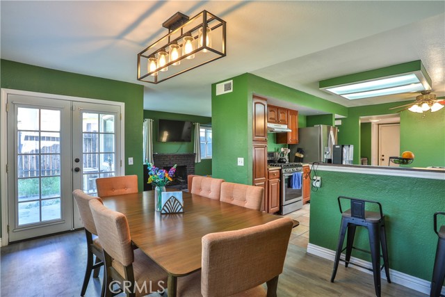 Affordable 3 bedroom 2.5 bathroom home in Moreno Valley north of the 60 freeway! Features include: Living room w/brick fireplace, upgraded dual pane windows, and wood laminate flooring, Kitchen w/tile flooring, breakfast nook, granite counters, & garden window, spacious dining room w/wood laminate flooring & wood shutters. There's also a half bathroom and separate laundry room downstairs! Upstairs features the Primary bedroom w/private balcony & remodeled primary bathroom with quartz counters, double sinks, vanity, shower/tub combo, and a walk-in closet! There's also 2 more nice size bedrooms upstairs with a full bathroom! Large back yard with covered patio! 2 car attached garage! Great location close to shopping, freeways 60/215/91, and favorite restaurants too!