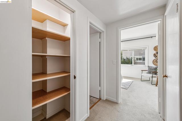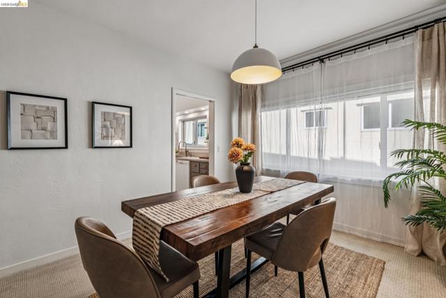Nestled in the heart of Berkeley’s legendary Gourmet Ghetto, this rare level-in co-op offers the perfect blend of quiet privacy and urban convenience. Positioned away from the street in a boutique 11-unit building, the home features no shared walls, ensuring a peaceful sanctuary. The expansive living room, anchored by an inviting fireplace and tasteful accent walls, is flooded with natural light and looks out onto a serene garden courtyard. Moving through the home, you'll find a bright, spacious kitchen with "cabinets galore" and two generously sized bedrooms featuring wall-to-wall Berber carpeting. The residence has been thoughtfully updated, highlighted by a custom bathroom featuring high-end accessibility upgrades, a curbless shower, and a Toto Washlet bidet. Storage is abundant with five interior closets plus a dedicated exterior storage unit. Modern essentials are well-covered with elevator access and a secure carport featuring an EV-ready outlet. Located just steps from culinary icons like Chez Panisse, The Cheese Board, and Saul’s Deli, this home offers a vibrant community vibe with easy access to BART and local transit.