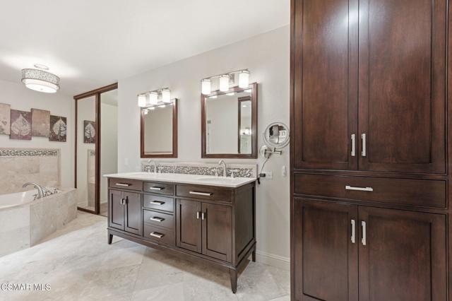 Offer deadline: March 9th, 5:00pm. Welcome to this beautifully refreshed home located on a quiet cul-de-sac in Thousand Oaks' highly desirable Copperwood neighborhood. Offering an exceptional combination of space, functionality, and thoughtful updates, this residence is perfectly suited for today's modern lifestyle.Step inside to soaring vaulted ceilings and an abundance of natural light that create an impressive and airy first impression. Fresh interior paint and new luxury vinyl plank flooring downstairs provide a clean, contemporary feel throughout the main living spaces. The updated kitchen features newly painted cabinetry and opens seamlessly to the family and dining areas, ideal for both everyday living and entertaining.A highly sought-after full bedroom and bathroom downstairs offers flexibility for guests, extended family, or a private home office.Upstairs, the expansive primary suite serves as a true retreat, featuring a generously sized bedroom and an ensuite bath complete with dual sinks, a soaking tub, and a separate stand-up shower. Additional bedrooms are well-proportioned and filled with natural light.The three-car garage provides ample parking and storage -- a valuable feature at this price point. Situated on a peaceful cul-de-sac while remaining close to parks, shopping, dining, and top local amenities, this home offers both privacy and convenience.An outstanding opportunity in one of Thousand Oaks' most desirable neighborhoods.