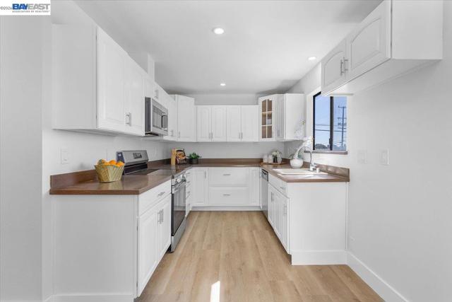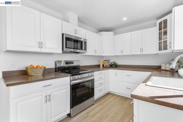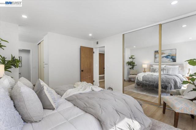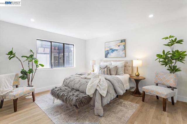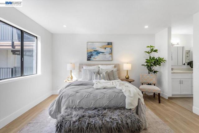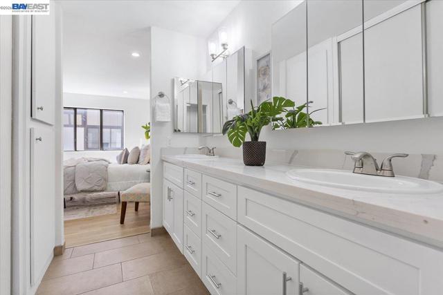 Welcome to this beautifully renovated 2-bedroom, 2-bathroom condo located in the heart of San Leandro. Stylish and move-in-ready home offers the perfect blend of modern upgrades, comfort, and convenience. Step inside to discover a bright and open floor plan filled with natural light. The spacious living room flows seamlessly into the dining area, creating an inviting space ideal for both everyday living and entertaining. The updated kitchen features contemporary cabinetry, sleek countertops, stainless steel appliances, and ample storage—perfect for any home chef. Both bedrooms are generously sized, offering privacy and comfort. The primary suite includes a beautifully renovated en-suite bathroom with modern fixtures and a clean, sophisticated design. The second bedroom is ideal for guests or additional family members, with a fully updated second bathroom nearby. This well-maintained community offers secured access, landscaped grounds, and convenient amenities. The unit also includes designated 2 car parking and dedicated storage closet with easy access to elevators for added convenience Located just minutes from shopping, dining, BART, and major commuter routes, this condo provides exceptional accessibility while maintaining a peaceful residential feel. A must