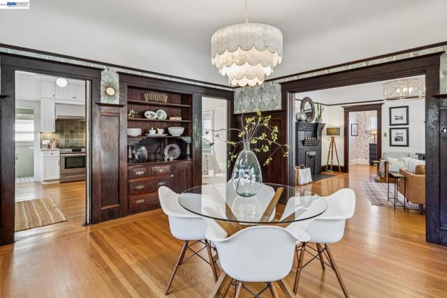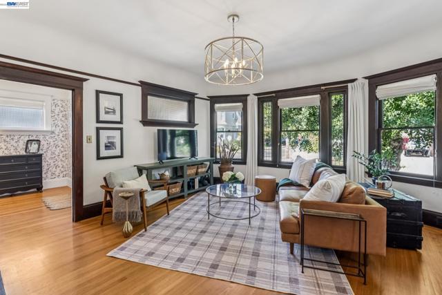 A fabulously restored 1910 Bronze Coast Craftsman with 2BR, 1-1/2 BA and a plus space*, lovingly cared for with stunning unpainted Craftsman details! A perfect blend of a beautiful historic home and modern living. This single-level Craftsman has a formal foyer, large living and dining rooms, a spacious tastefully remodeled kitchen with stainless steel appliances, original hardwood floors, a laundry room, an expansive basement for home office/exercise room/storage*(buyer to investigate) and a 1-car garage. Vintage details include numerous unpainted Douglas fir windows, doors and paneled wainscoting, trim, pocket doors, hardwood floors, a decorative stone and brick fireplace, tall coved ceilings, Craftsman built-ins, picture rails and bay windows with window seats. Updates were all done with permits: kitchen, 2 bathrooms, recent furnace and roof, all new electric throughout the home and an electric water heater. Even the sewer lateral is compliant and the foundation is seismically retrofit! Just 2 blocks to Park St. dining and shopping and only minutes to the South Shore Center and Trader Joe's. Come see this conveniently-located, exceptional Craftsman home!