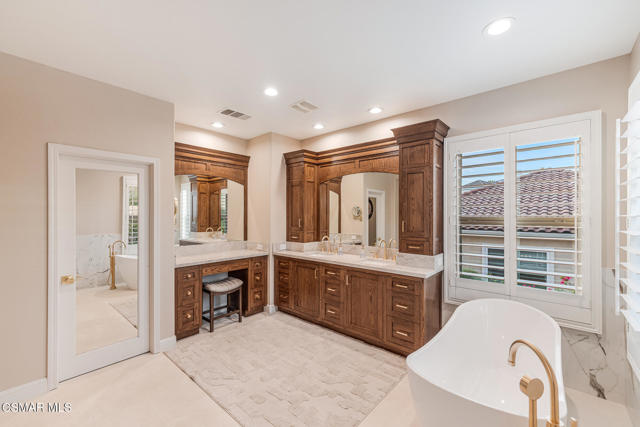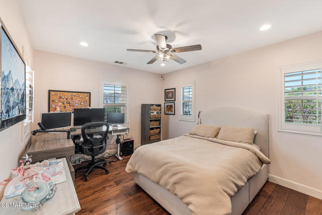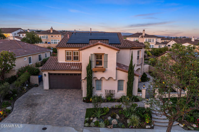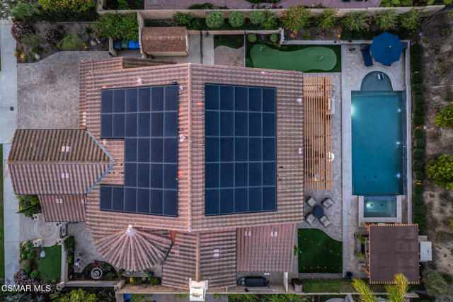 Largest Shenandoah Model in Gated Moorpark Highlands with Resort-Style Backyard & Beautiful Upgrades!Located in the highly sought-after gated Moorpark Highlands community, this stunning home features the largest Shenandoah model and offers the perfect blend of luxury, comfort, and California indoor-outdoor living. With 5 bedrooms and 4.5 bathrooms, including a desirable downstairs bedroom with full bath, the home provides an ideal layout for both everyday living and entertaining.From the moment you enter, you'll notice the beautiful upgraded flooring, plantation shutters, and custom built-ins that add warmth and sophistication throughout. The thoughtfully designed floor plan includes a private office/den, formal living room with fireplace, and elegant formal dining room, offering multiple spaces for gathering and entertaining.The gourmet kitchen is the heart of the home, featuring stainless steel appliances, a large granite island, abundant cabinetry, and a bright breakfast area. The kitchen opens seamlessly to the spacious family room, creating an inviting and comfortable space for family and guests.Upstairs, a generous loft offers the perfect flex space for a media room, game room, or additional lounge area. The luxurious primary suite provides a relaxing retreat with a walk-in closet and a beautifully remodeled spa-inspired bathroom. In addition, all secondary bathrooms have been recently and tastefully remodeled, giving the home a fresh and modern feel throughout. Three additional generously sized bedrooms complete the upper level. Bonus!: Included is a paid-off SOLAR electric system and two home back-up batteries.Step outside to your private resort-style backyard, designed for year-round enjoyment. The beautifully landscaped yard features a gorgeous in-ground pool, a covered patio with outdoor television, and a dedicated BBQ area with countertops, creating the perfect setting for entertaining, relaxing, and enjoying Southern California living. This exceptional home offers space, style, and an unbeatable lifestyle in one of Moorpark's most desirable gated communities.