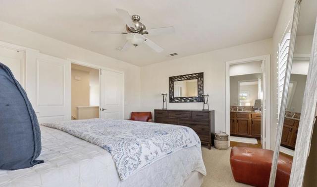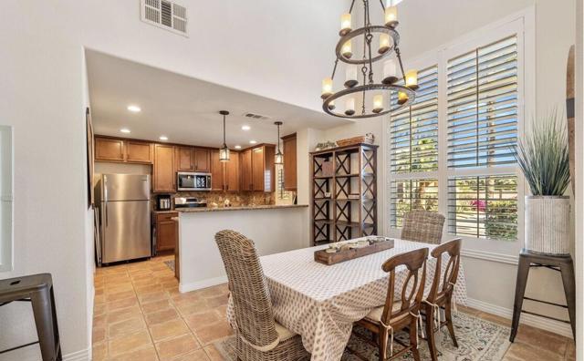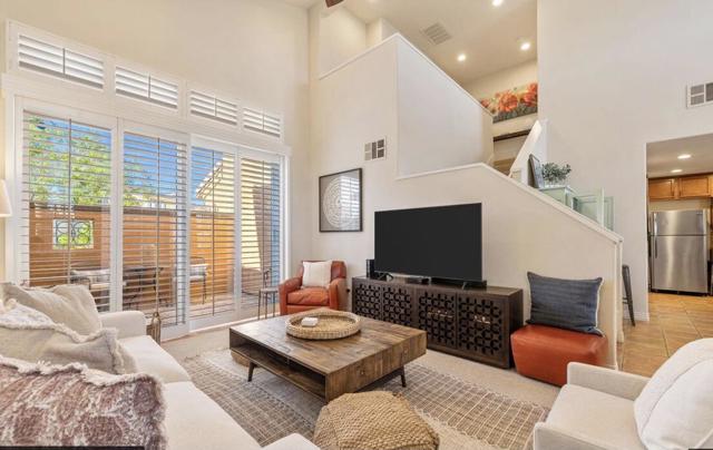 Behind the gates of beautiful Codorniz, this pristine 2-bedroom, 3-bath home showcases the highly desirable Cassia floor plan -- originally selected by the builder as a model for its exceptional design and appeal. Gorgeous mountain views greet you as you enter through the gated front courtyard, creating a warm and inviting first impression. Inside, the dramatic foyer opens to soaring 17+ ft vaulted ceilings, beautiful Spanish tile flooring, new carpet, and a bright, immaculate interior that truly feels like a model home.The stunning great room flows effortlessly to the private back patio, offering the perfect setting for relaxing or entertaining. The inviting kitchen features newer stainless-steel appliances including a refrigerator, dishwasher, stove/oven and microwave.Upstairs you'll find two spacious primary suites, providing ideal privacy for guests or family, along with a large open office or flex space. Additional features include a private laundry closet with stackable washer and dryer and direct access to a two-car garage with finished flooring and custom cabinetry.Residents of Codorniz enjoy low HOA dues and resort-style amenities, including beautifully maintained grounds, roof and exterior maintenance, cable and internet, tennis courts, fitness center, and a large community pool and spa located just across the street. Ideally located just minutes from Old Town La Quinta, where you'll enjoy charming restaurants, boutique shopping, golf courses, and world-famous music festivals.A truly exceptional home in one of La Quinta's most desirable gated communities. Schedule your private showing today.