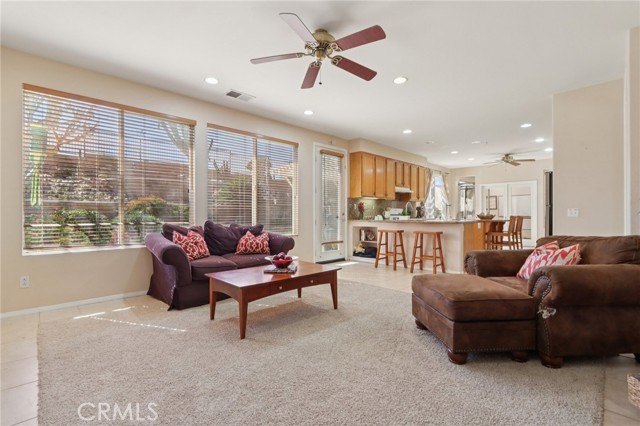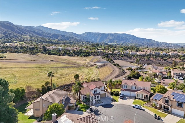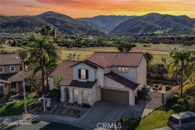 VIEWS | DOWNSTAIRS BEDROOM AND BATH | NO NEIGHBORS BEHIND | LANDSCAPED FRONT AND BACK Located at the end of a quiet cul-de-sac in desirable South Corona, this well-maintained, very private home offers a wonderful opportunity to create your ideal living space in a highly sought-after location. Inside, the home features a bright and open layout with a formal living room highlighted by soaring cathedral ceilings and crown molding, creating an elegant first impression. A formal dining room provides the perfect space for gatherings and special occasions. The spacious family room with fireplace offers a comfortable place to relax and connects easily with the rest of the home. The kitchen is both functional and inviting, offering space for a breakfast table and beautiful glass doors that open to a flexible area that can serve as a home office, study, or additional living space. Two doors lead to the backyard—one from the kitchen and one from the family room—making indoor-outdoor living convenient and natural. The main level also includes a downstairs office that could easily serve as a bedroom, a full bathroom, and a laundry room with a utility sink. Upstairs, a loft provides additional living space ideal for a media room, play area, or workspace. The guest bedrooms are generously sized, while the primary bedroom enjoys beautiful mountain views and abundant natural light, creating a peaceful retreat. The home is in excellent condition and presents an opportunity for a new owner to add personal updates over time and make the space their own. The outdoor setting is truly a standout feature. The front and backyard landscaping create a peaceful, park-like environment designed for relaxation and enjoyment. Very low maintenance, using very little water. The backyard includes a patio cover, fire pit, and newly replaced vinyl fencing, along with a private gate that opens to a path and open land behind the home. With no neighbors directly behind, the property enjoys beautiful views and direct access to nearby walking and hiking trails. Low HOA, low taxes, located in an excellent school district, with easy access to freeways, shopping, and parks.