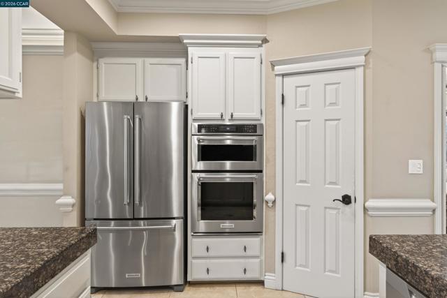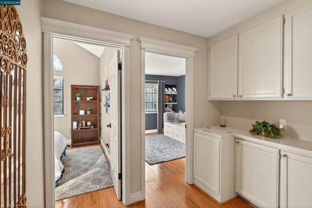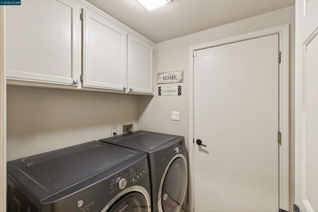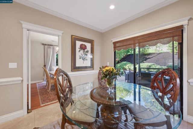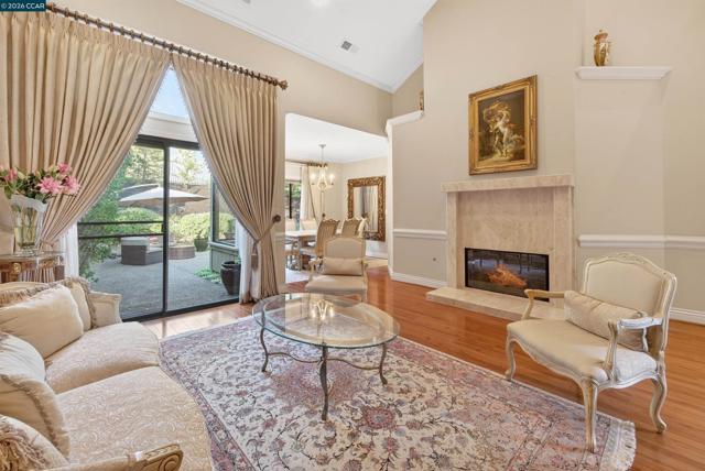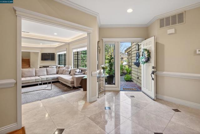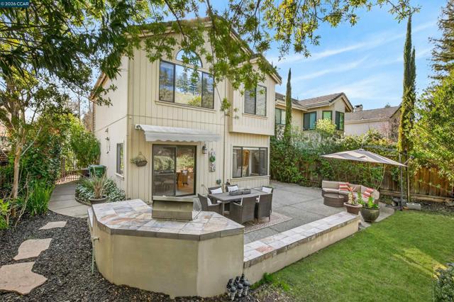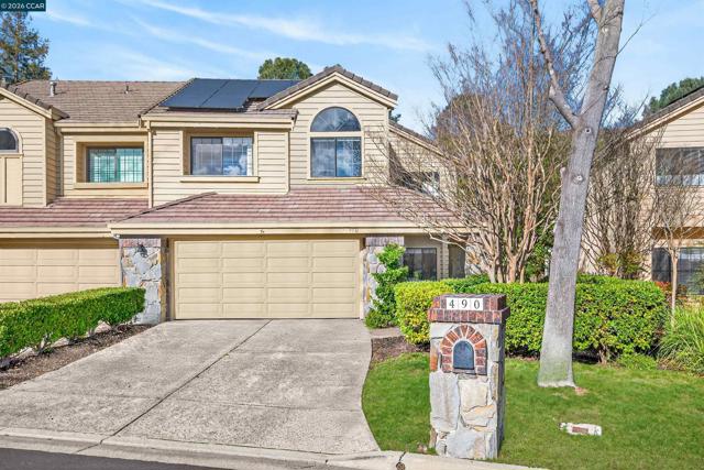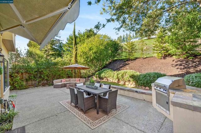 Meticulously maintained, beautifully designed duet home on a cul-de-sac borders open space. Near Falls golf course w/in gates of Blackhawk Country Club. Updated sophisticated design. Scenic hillside views. Southern exposure. Courtyard/garden entry. Vaulted ceilings. Recessed lights. Crown & chair rail molding. Stone tile, wood-grain laminate flrs. 2236+/-SF on 2 levels. 3 bds/2.5 bths. Living rm w/gas frpl. Formal dining rm. Kitchen w/granite counters/bksplsh, painted cabinets, peninsula island/brkfst br. Updated stainless KitchenAid appls incld 5-burner gas cooktop, convection oven, microwave, refrigerator. Fisher Paykel dishwasher drawers. Casual dining area. Family rm w/crown molding, uplighting, frnt-facing garden view. Staircase w/tread lights. Landing or reading, office niche. Primary suite w/vaulted ceiling, hillside views, mounted flat-screen TV. Walk-in + 2 reach-in closets. En suite w/dual-sink vanity, tub, shwr. 2 bdrms share full bth w/tub/shwr combo. Inviting ultra pvt bkyd w/patio, built-in grill, mature trees, lush foliage, retractable awning. Gentle slope to terrace. 2-car garage. Dual EV chrgrs. Solar. Central AC. Near 2 golf courses, clubhouses, Spts Complex. Fitness Ctr. Tennis/picklebll cts. Shopping/dining, downtown, top-rated SRVUSD schls, frwys, Mt Diablo.
