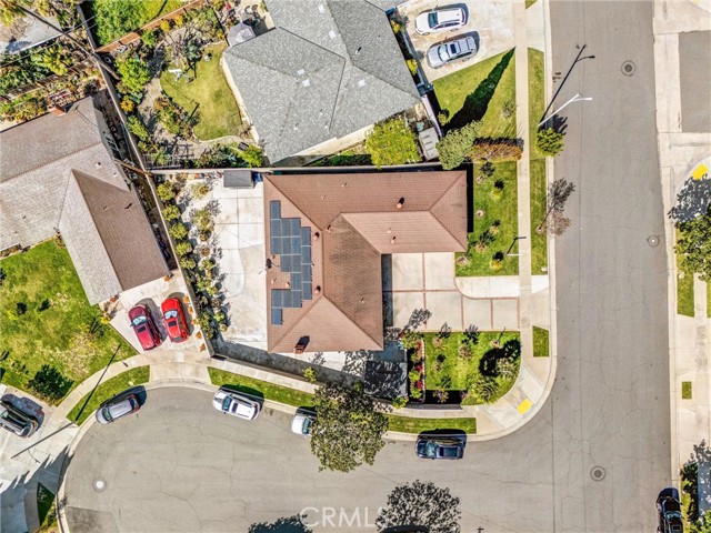 Recent upgrades include newer laminate flooring, upgraded water piping system installed in the ceiling, upgraded AC and heat, tile flooring in the garage (a must-see feature). The backyard has been extensively improved with concrete paving and a surrounding brick wall, providing a low-maintenance and private outdoor space. The swimming pool has been recently covered for added safety and usability. Home is equipped with leased solar system; buyer to assume lease (Estimated monthly payment is less than $100).