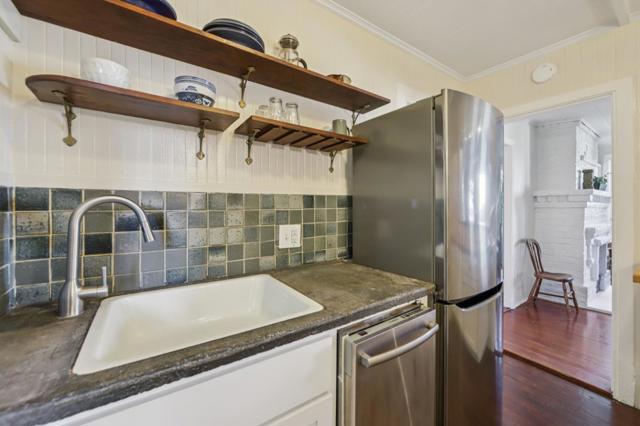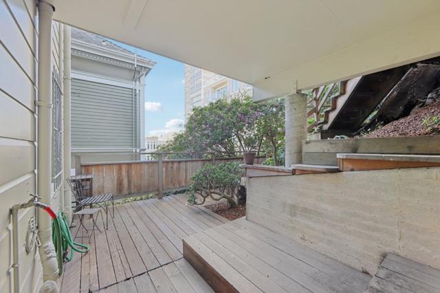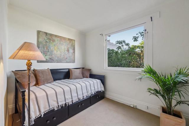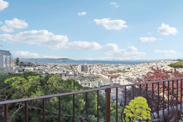 Perched atop Russian Hill, with a commanding sweeping northeast view. Amidst an ever-changing dance of sea, clouds and sky. It offers stunning northeast views of North Beach, Telegraph Hill, the Bay, Angel Island, Alcatraz, Bay Bridge, and Golden Gate. A serene urban retreat above Columbus Avenues bustle. Entering Macondray Lane from Jones St. is a passage into another world. The traffic recedes, air cools, soundscape shifts to wind in foliage, birdsong, and the gentle trickle of water from the Lanes small waterfall. The dense plantings create the sensation of a hidden wooded ravine. And then, emerging quietly from the greenery, stands the restrained facade without the typical bay windows of SF; composed, vertical, and watchful. The footprint dates to the Gold Rush era. Survived the 1906 earthquake and Fire, linking modern SF to its early days. A house of artists for more than a century, the house has existed as a refuge for the curious, the creative, the Arts/Crafts era, Beat generation, countercultural decades of the 60s, 70s, into the present day. It is modest in scale but immense in atmosphere. A house shaped by landscape, survival, conversation, and view at once intimate and expansive hovering above the city it has quietly observed for over 150 years. Own a piece of history!
