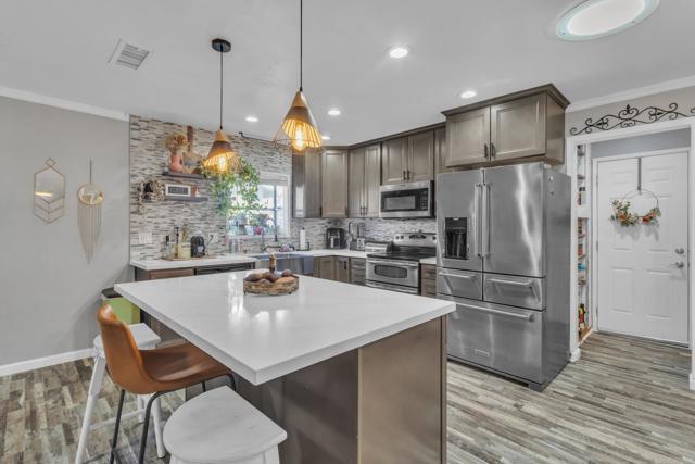 Located in the highly sought-after neighborhood of Granite Hills, this beautiful move-in ready home with a crystal clear pool offers comfort, style, and thoughtful upgrades throughout. The home features a fully remodeled kitchen and both bathrooms have been tastefully updated. Recent improvements include fresh paint and upgraded flooring throughout, creating a clean and modern feel. Enjoy added convenience with an alkaline water filtration system, complete with a dedicated front faucet. Natural light fills the home through two large skylights and four sun tunnels, enhancing the bright and airy atmosphere. Additional features include a newer pool vacuum, two storage sheds on the side of the home, and a spacious driveway with parking for up to three cars. Ideally located near shopping, restaurants, and schools, this Granite Hills gem offers both comfort and convenience in one of El Cajon’s most desirable neighborhoods.