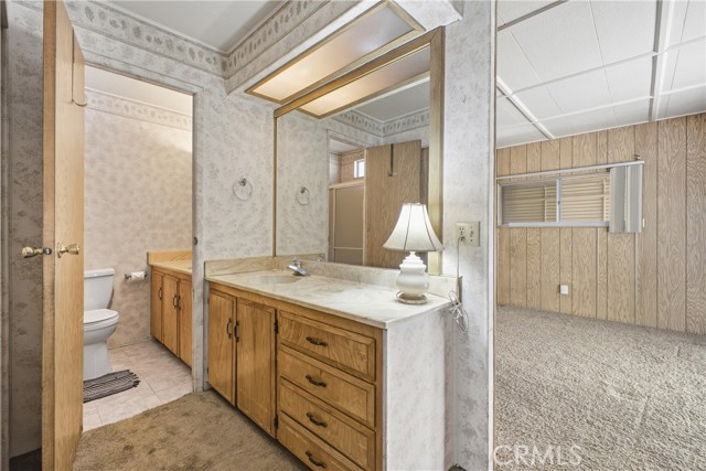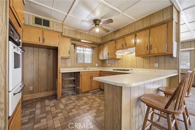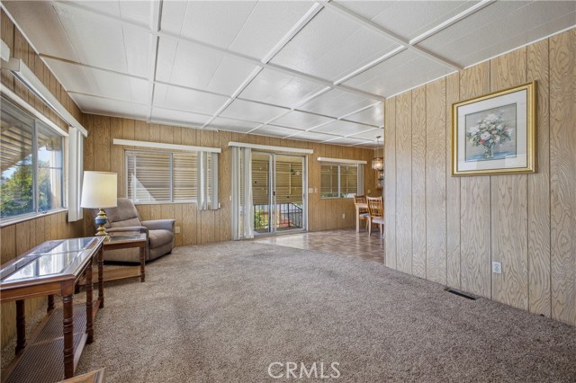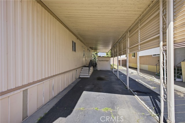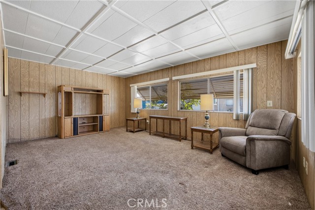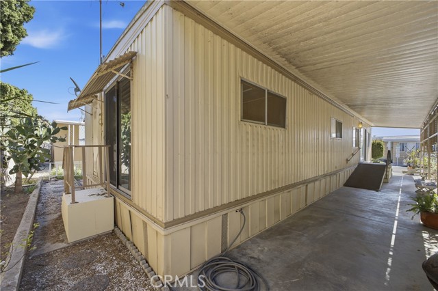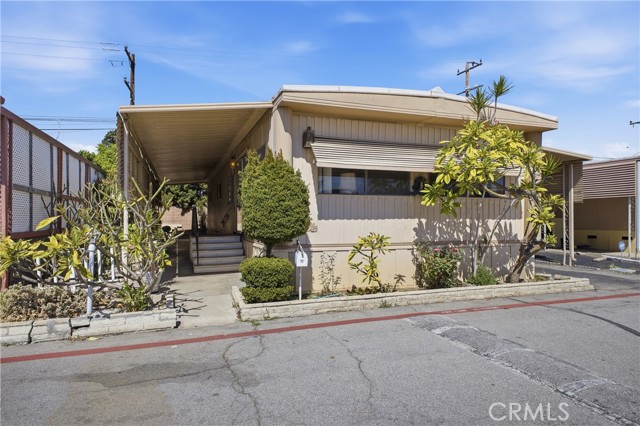 This great mobile home is located in the highly desirable Daleview Mobile Home Estates 55+ senior park. The home opens from a welcoming sliding glass front door to a light and bright living room featuring a row of windows and an open dining area featuring a built-in wall-length mirrored hutch. The kitchen has ample counter space, gas cooktop with hood vent and an inviting breakfast bar. The home offers a total of 2 bedrooms and 2 bathrooms. The primary bedroom suite has a sliding glass door for natural light, and a private bathroom with dressing area, vanity, sink and dual closets, plus a separate enclosed area with the shower and another vanity and sink. Additional amenities include a well-designed floor plan, 1,080 square feet of living space, laundry room with storage closet, central air and heat and 2 linen closets. The exterior space includes a spacious covered front patio and a side garden, 2-car carport and 2 storage sheds. The park offers a sparkling pool and spa, comfortable sitting areas, clubhouse with kitchen, walking paths with sitting areas among lush flowering gardens, a covered barbecue area with picnic tables, and ample guest parking. This home is perfect for comfortable living and enjoyable entertaining.