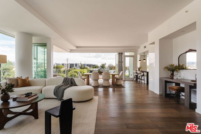 Set high within the exclusive Four Seasons Private Residences, this exceptional quarter-floor northeast corner home captures sweeping panoramic views from the Hollywood Hills across West Hollywood and onward to the Downtown skyline. Towering above its neighbors, walls of glass surround the residence and open to an expansive wraparound balcony, creating a seamless indoor-outdoor living experience and filling the interiors with natural light throughout the day. Private dual-elevators open directly into the unit's foyer, offering a rare sense of arrival and privacy. The residence offers two en-suite bedrooms with walk-in closets, plus a den currently used as a third bedroom, allowing for flexible living, work, or guest accommodations. Positioned beside the iconic Four Seasons Hotel, the Private Residences rise as a boutique collection of just fifty-nine homes within a striking 13-story California Modern building. Interiors, curated by Martyn Lawrence Bullard, blend warmth and sophistication, while chef-caliber kitchens outfitted with Gaggenau appliances and spa-inspired baths reflect a commitment to both design and livability. Life here is defined by a service-driven lifestyle that extends well beyond the walls of the residence. Residents enjoy access to a full suite of five-star amenities, including a private restaurant with 24-hour in-residence dining, concierge and valet, and dedicated property management capable of preparing the home for arrival, from a fully stocked kitchen or private jet on return. Additional amenities include a saltwater pool with cabanas, a 19-seat IMAX private theatre and lounge, a Harley Pasternak-designed fitness center, residents' club room, and available housekeeping services. Set at the intersection of West Hollywood and Beverly Hills, moments from some of Los Angeles' most celebrated dining, shopping, and nightlife, this residence offers a rare balance of architectural presence, elevated design, five-star service, and absolute discretion: true Four Seasons living.