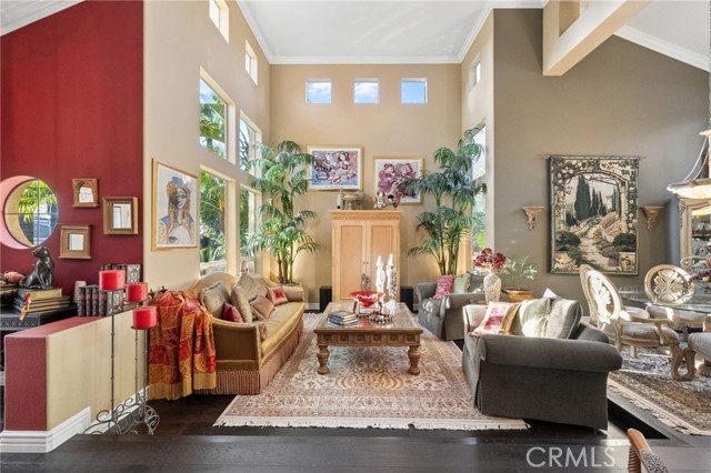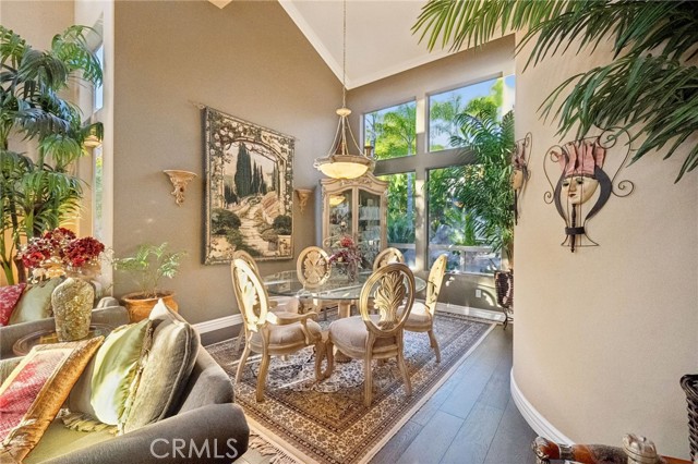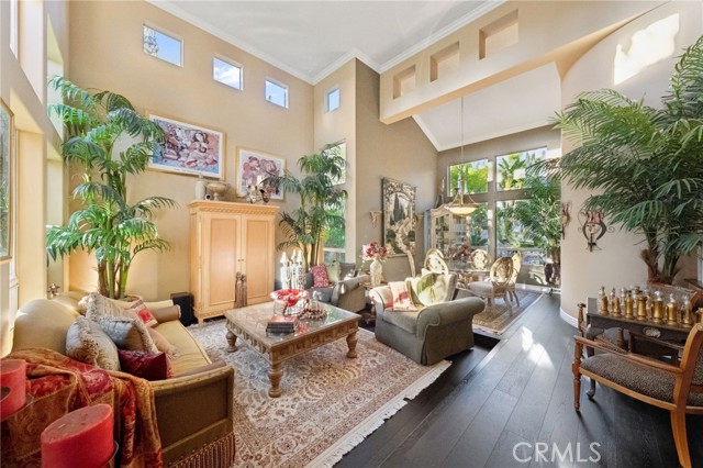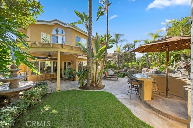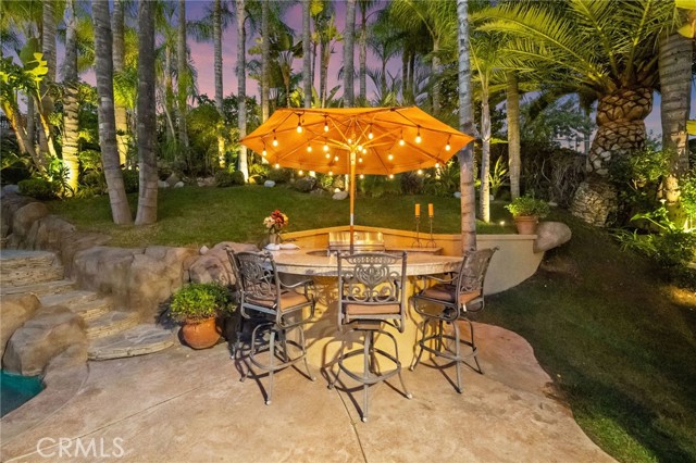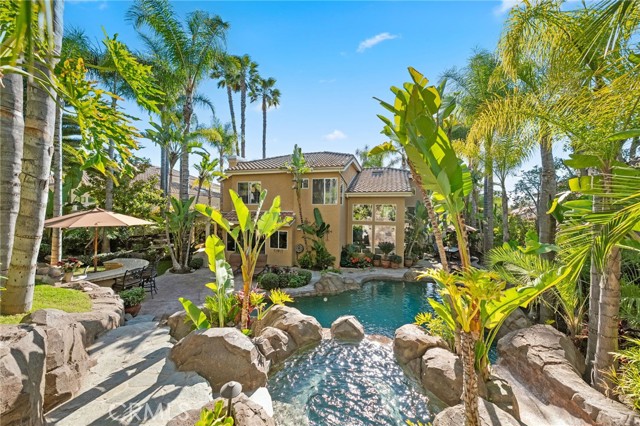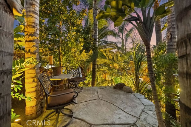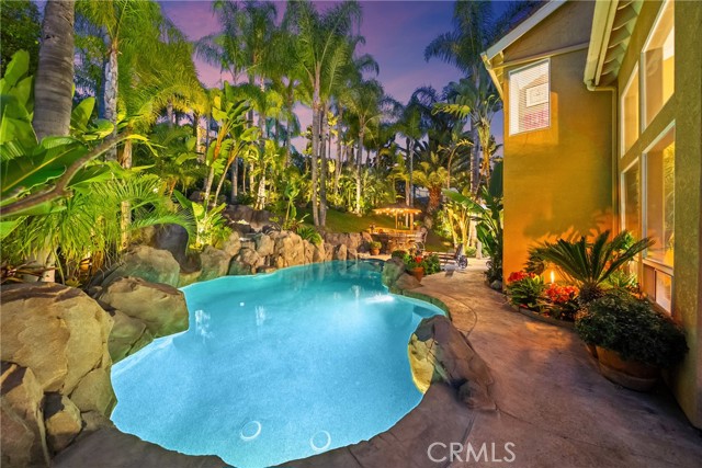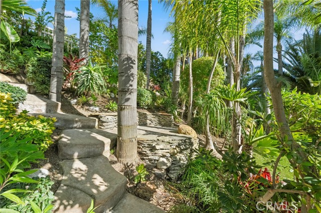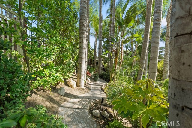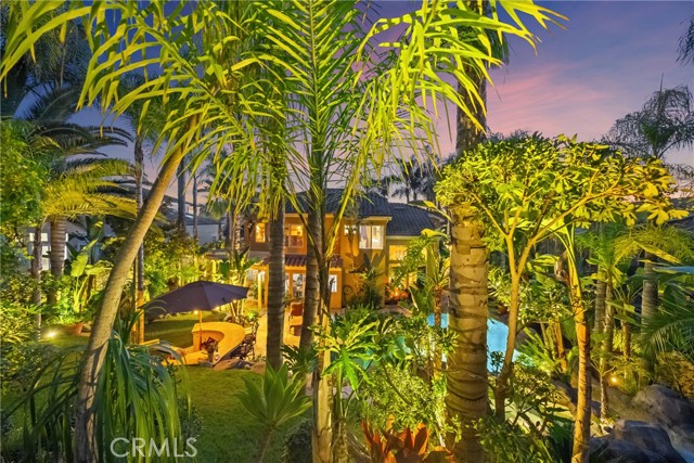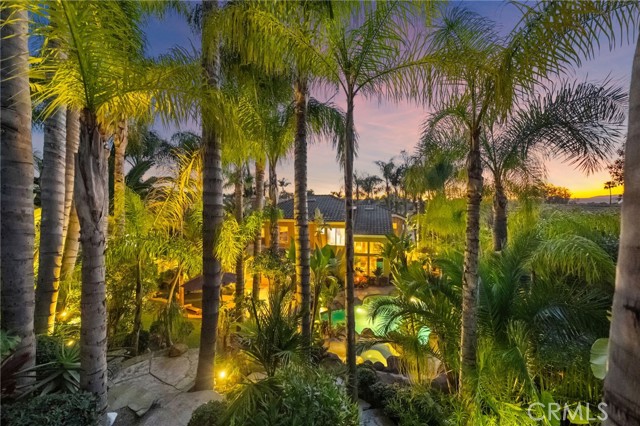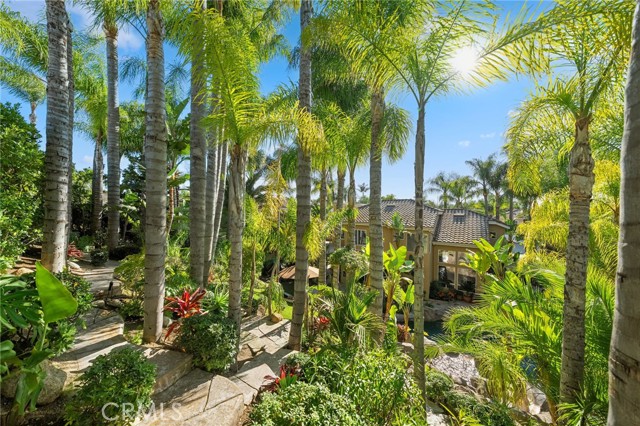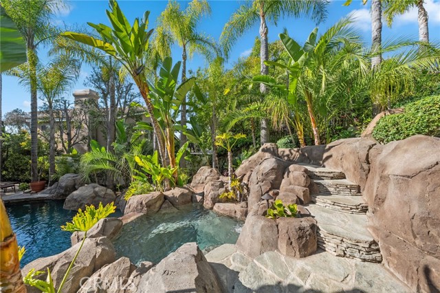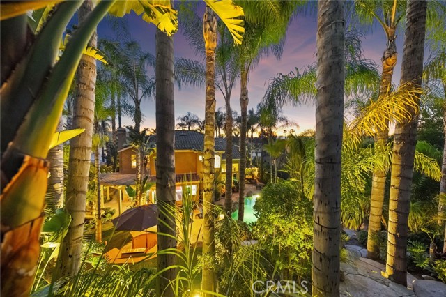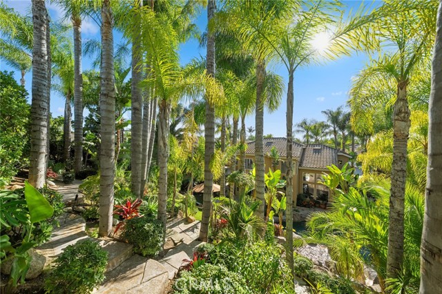 The terraced grounds, masterfully designed and built by Mission Pools, showcase a one-of-a-kind pool and spa framed by over 150 mature palm trees, lush, layered greenery, and 32 strategically placed flood lights that create a stunning evening ambiance. Multiple entertaining zones unfold across three distinct landings, including a built-in BBQ pavilion and a serene koi pond where you can fully immerse yourself in the gardens. A cascading waterfall provides a tranquil soundtrack that can be heard from inside the home, enhancing the seamless connection between indoors and out. Thoughtfully curated and nurtured to maturity, this landscape is not simply maintained - it has been intentionally cultivated.