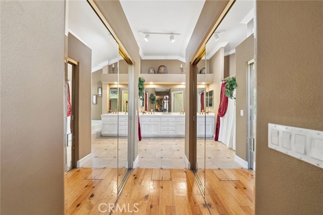 Upstairs, 3 guest bedrooms share a spacious hall bath with dual vanities and a separate shower and water closet for added privacy. The primary suite evokes the charm of a luxury bed-and-breakfast escape, complete with solid knotty pine hardwood floors, vaulted ceilings, and picturesque windows overlooking the gardens and pool. Dual walk-in closets offer generous storage.