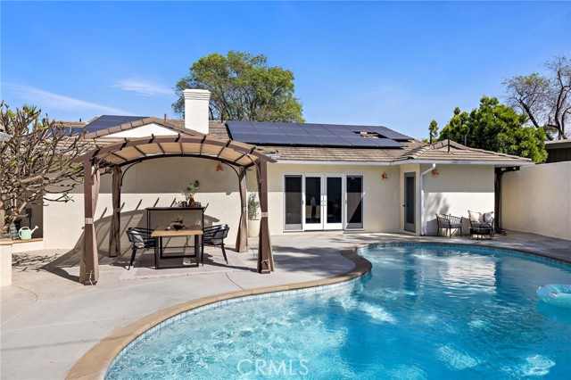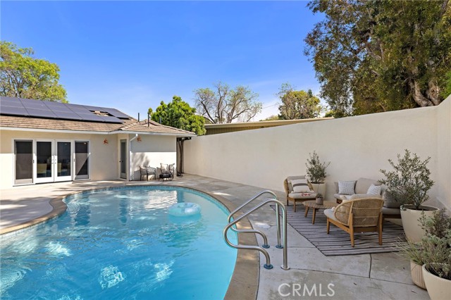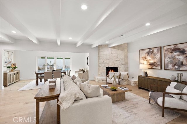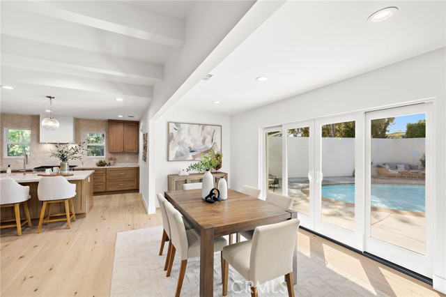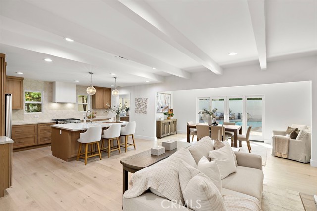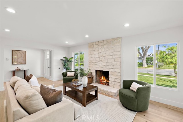 PARK ESTATES | This beautifully upgraded residence offers a rare opportunity to own a home with brand-new finishes and a fresh, never lived in feel. Completely transformed with today's most desired features, this stunning residence embodies the warmth and ease of an organic California ranch style home where curated design, natural materials, and thoughtful craftsmanship come together in perfect harmony. Every space has been thoughtfully redesigned with a focus on effortless indoor-outdoor living featuring all new engineered oak flooring and a cohesive palette that guides you through beautifully redefined spaces. The formal living room (potential home office/flex space/fourth bedroom) off the entry features a fireplace and sliders leading to a serene private patio, one of several outdoor spaces throughout the property. The gorgeous and BRAND NEW open concept kitchen features a large island with Taj Mahal quartzite, custom backsplash, generous use of cabinetry, all-new appliances, and an inviting flow into the family room. A walk-in butler’s pantry with beverage service, cabinetry, and wine fridge elevates both daily living and effortless entertaining. A well-placed powder room off the kitchen also connects directly to the pool. The family room centers around a cozy fireplace and opens to the dining room. All the bedrooms have new Milgard windows and bathrooms have been fully upgraded with designer-selected tilework, fixtures, and finishes. The separate bedroom wing boasts three bedrooms and two additional bathrooms. The primary suite off the pool features backyard views, a walk-in closet and a stunning spa-inspired bath. The exterior is just as thoughtfully renewed...the pool has been recently plastered with new waterline tile accents as well as multiple patio areas creating endless opportunities for outdoor living at its finest. There is a long, elegant driveway with an electronic gate which leads to the finished two-car garage (optional casita/gym space). Additional upgrades include tankless water heater, central air, paid off solar panels, new doors, & new Milgard windows. Lovely curb appeal with all new sod, landscaping, & lighting. Residents enjoy the gorgeous tree-lined streets, wide lots, nearby park, and excellent schools. Set on a prime lot in one of the neighborhood’s most desirable locations, this home offers the perfect blend of elevated design and Park Estates living.