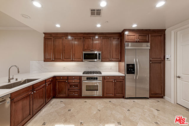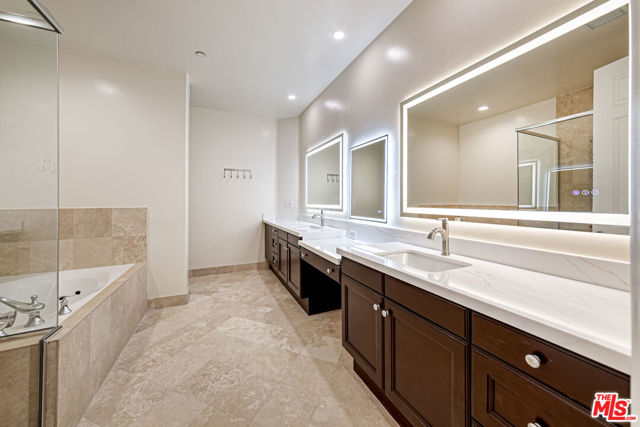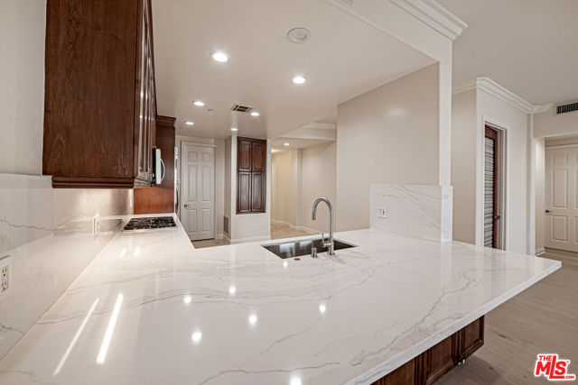 Remodeled, turnkey home features 2 bedrooms plus Den (Ideal for a play room or office) and 3 bathroom. Brand new premium engineered hardwood floors, new kitchen cabinet counter top and bathroom, custom-built closets and remote-controlled window blinds. Enjoy the feel of a single-family home with high ceilings and a large, sun-drenched patio- perfect for entertaining. 2 side-by-side parking with custom made storage cabinet at front of parking spaces. Benefit from exceptionally low HOA dues and a prime location just 10minutes from Cedars-Sinai hospital, world - class dining, Rodeo Drive shopping, and top-rated BH schools. Must see for all buyers seeking modern construction and move-in-ready luxury in 90211! Listing agent related owner.