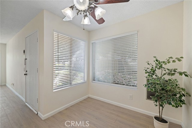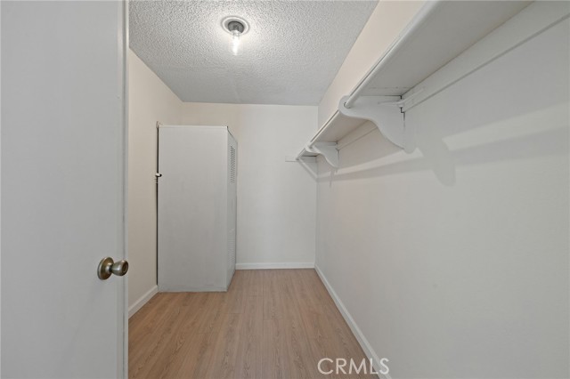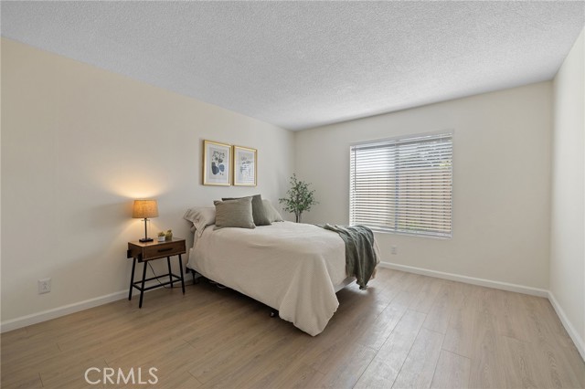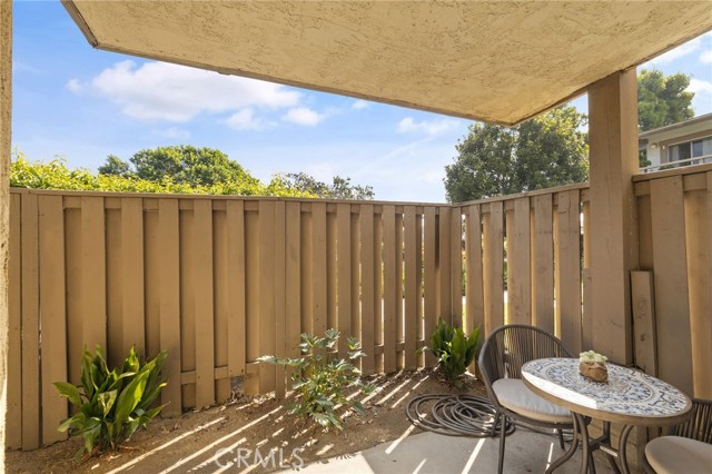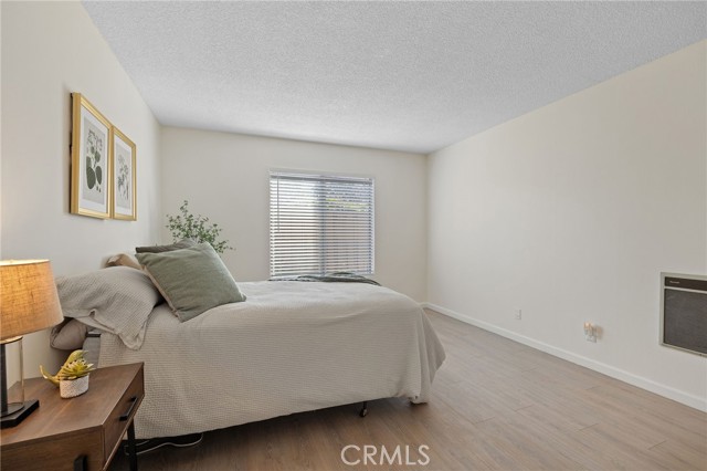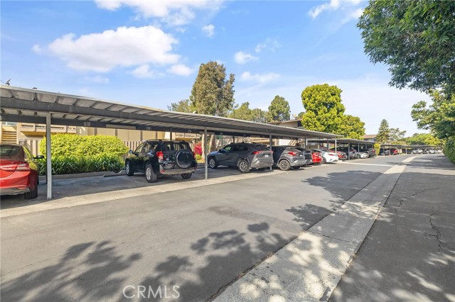 The generously sized bedroom includes a large walk-in closet, with additional space that offers the potential for in-unit laundry hookups. The unit also includes two assigned covered parking spaces—one conveniently located directly in front of the unit and a second near the front gate.