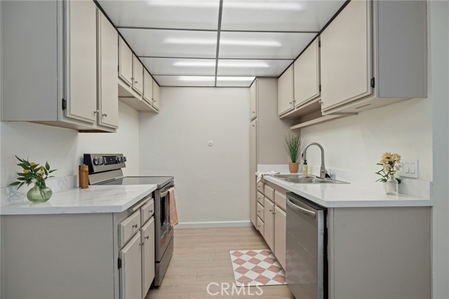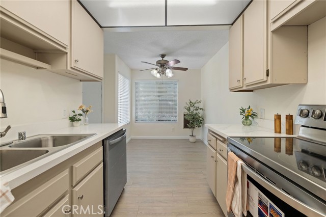 Recently remodeled, the home features a modern kitchen with a brand-new range and dishwasher, along with a functional layout perfect for everyday living. The spacious living room opens to a private patio, ideal for relaxing or entertaining.